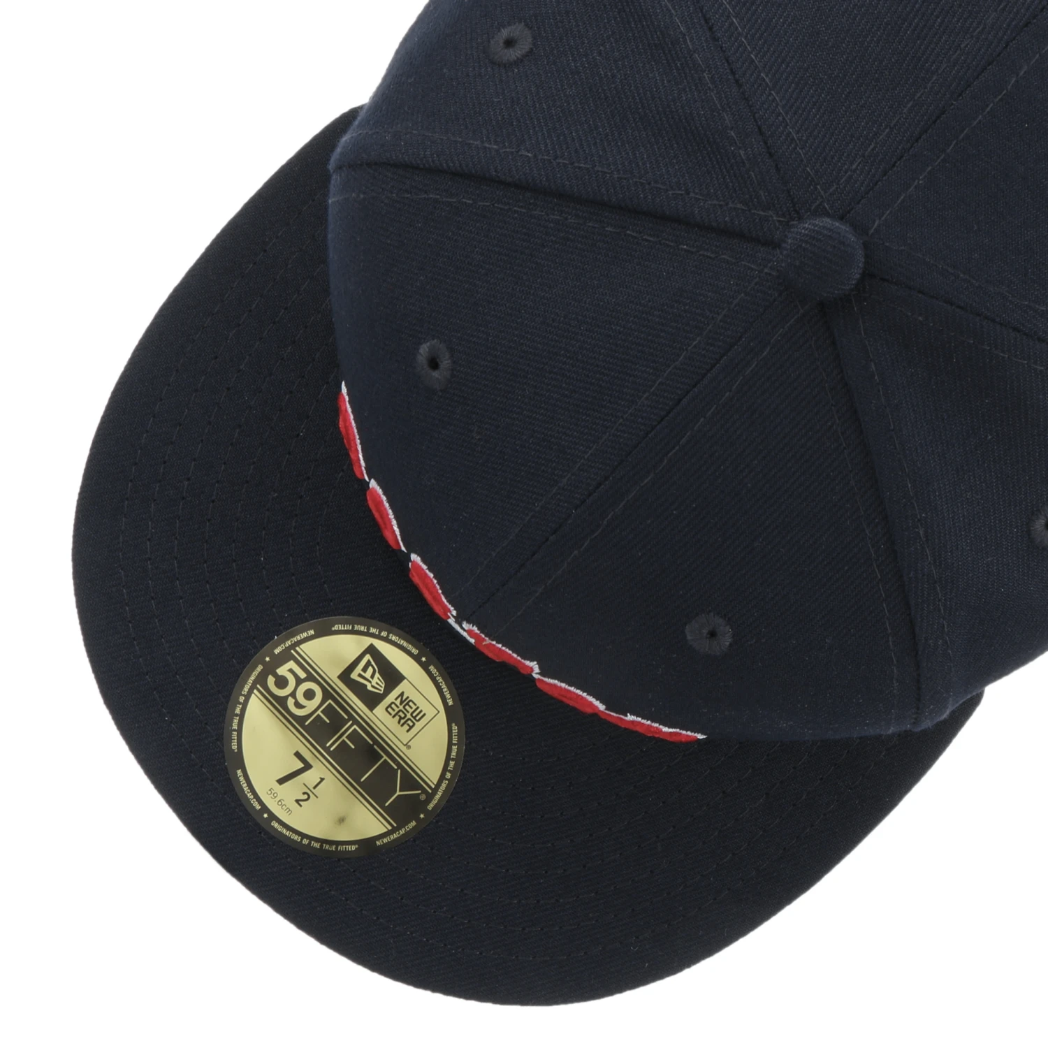 Die Fitted Cap verfügt über eine verstärkte Front und den charakteristischen geraden Visor, auf dem sich der nicht minder typische, glänzende Sticker findet.