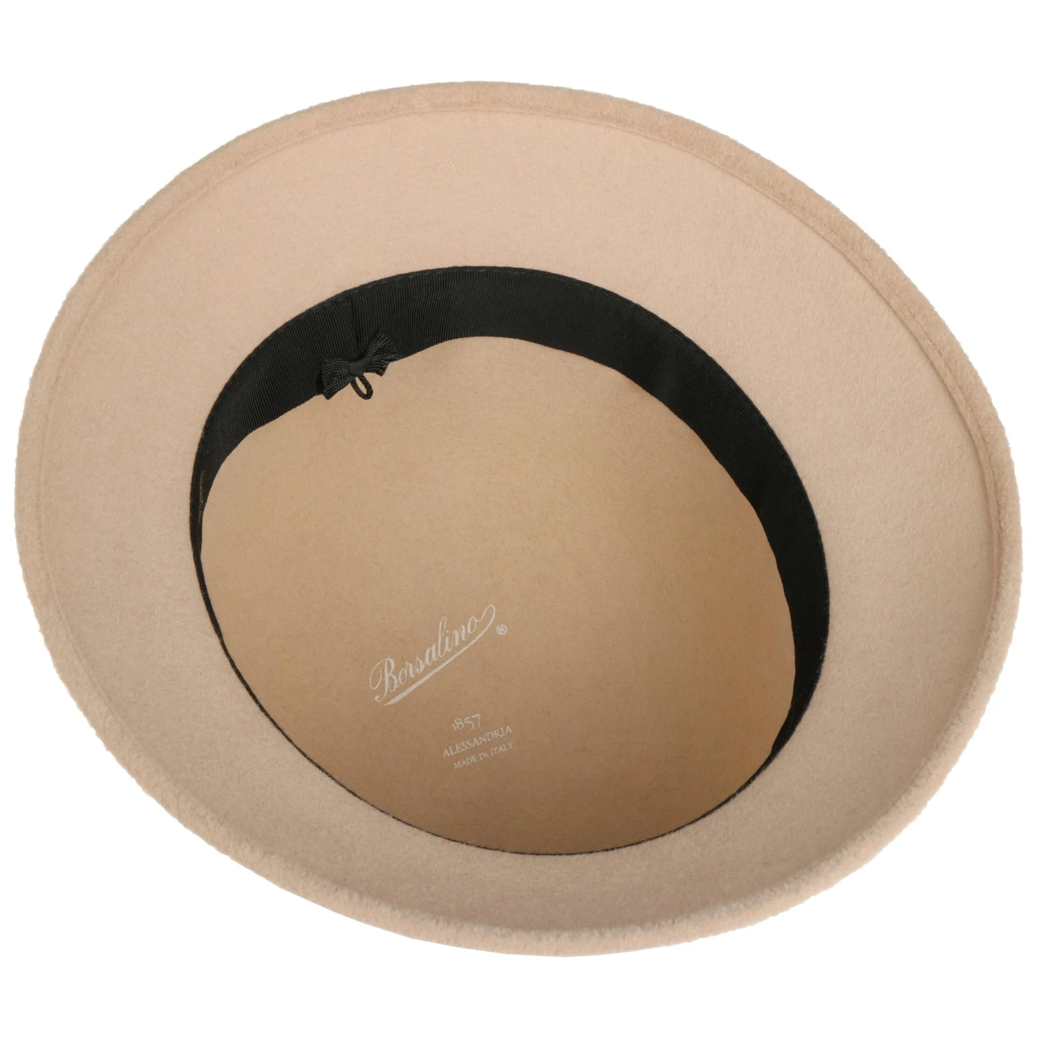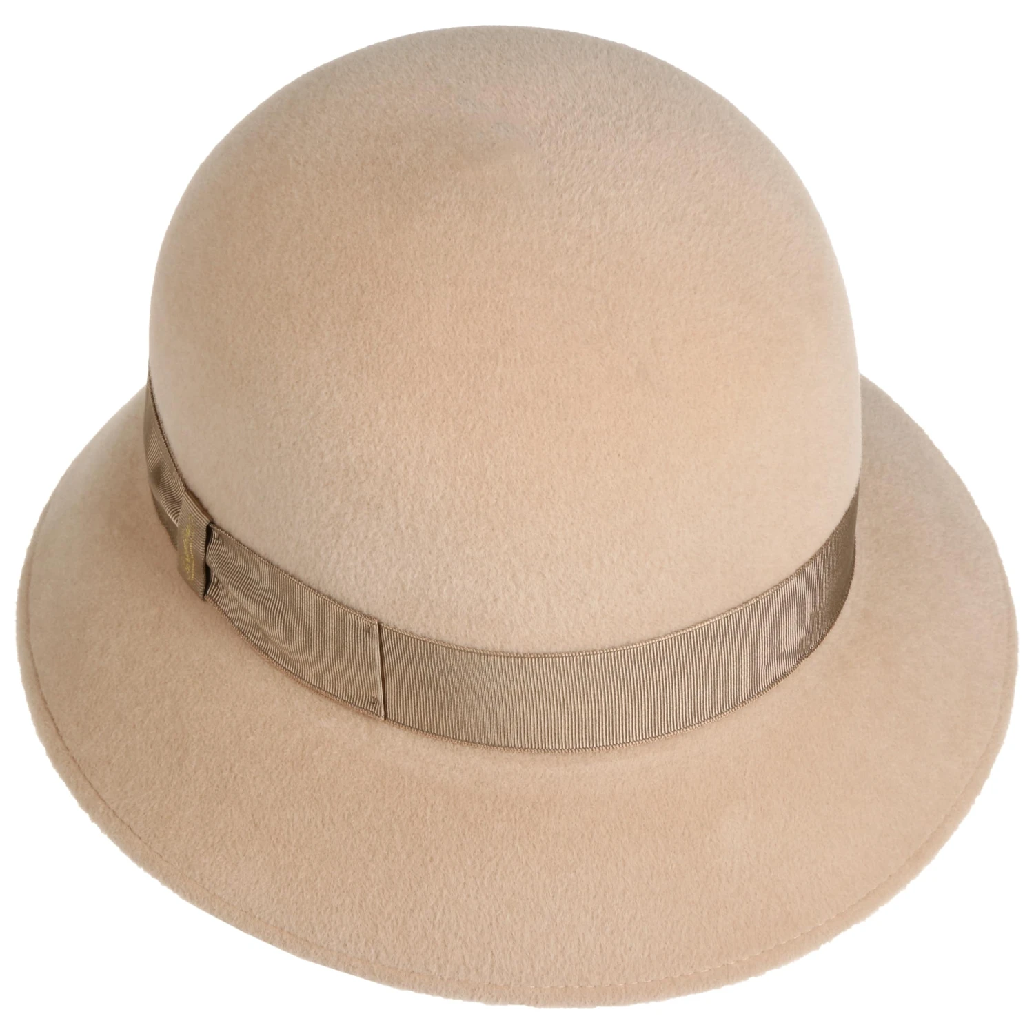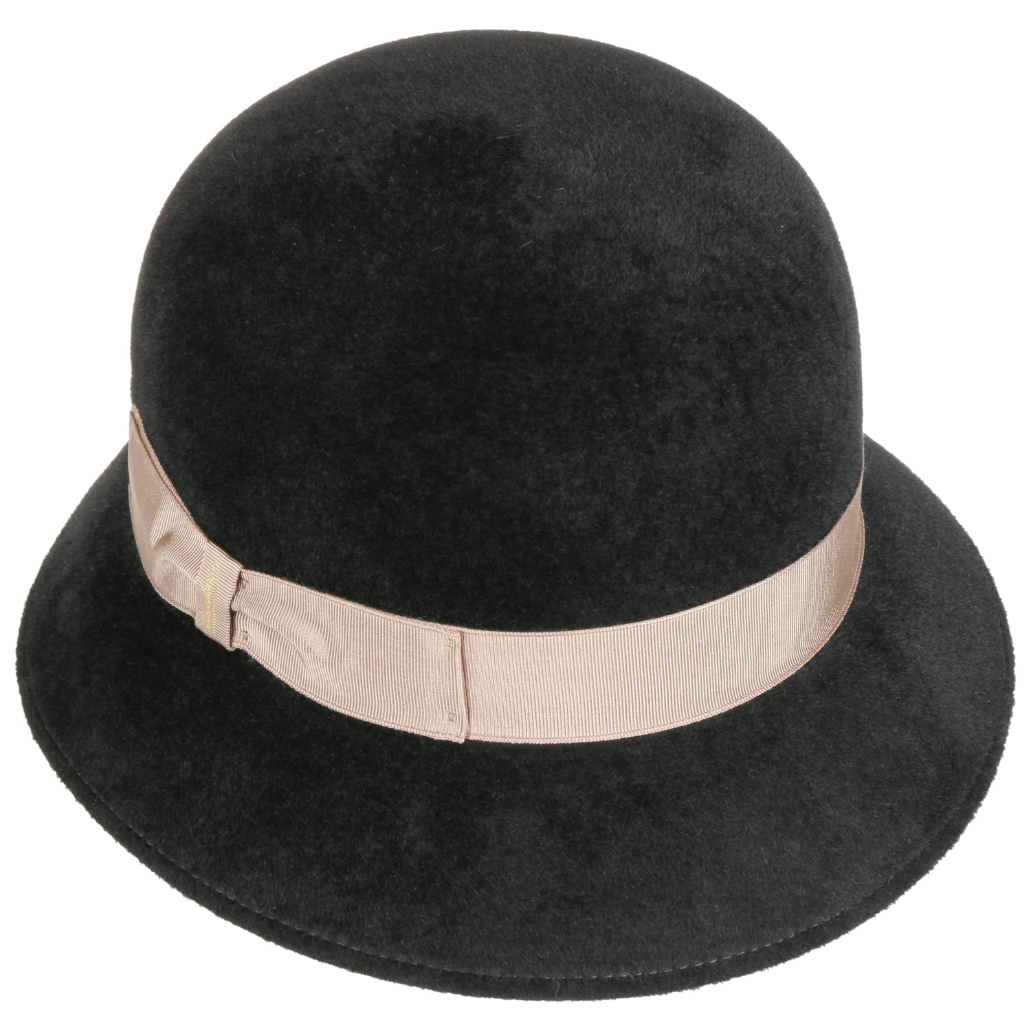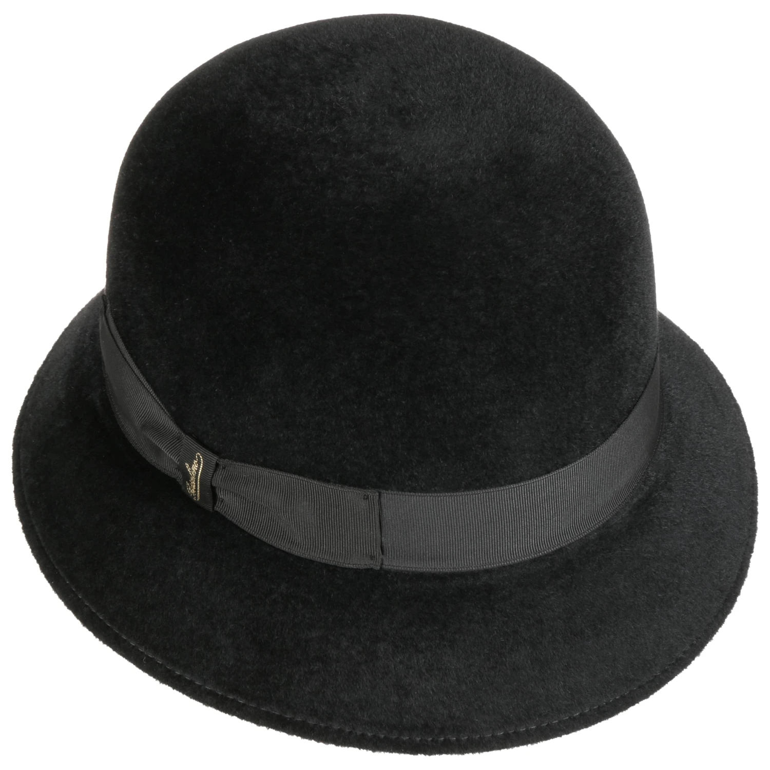 Der schöne Glockenhut von Borsalino zieht mit seinem raffinierten Spiel aus Kontrasten die Blicke auf sich.