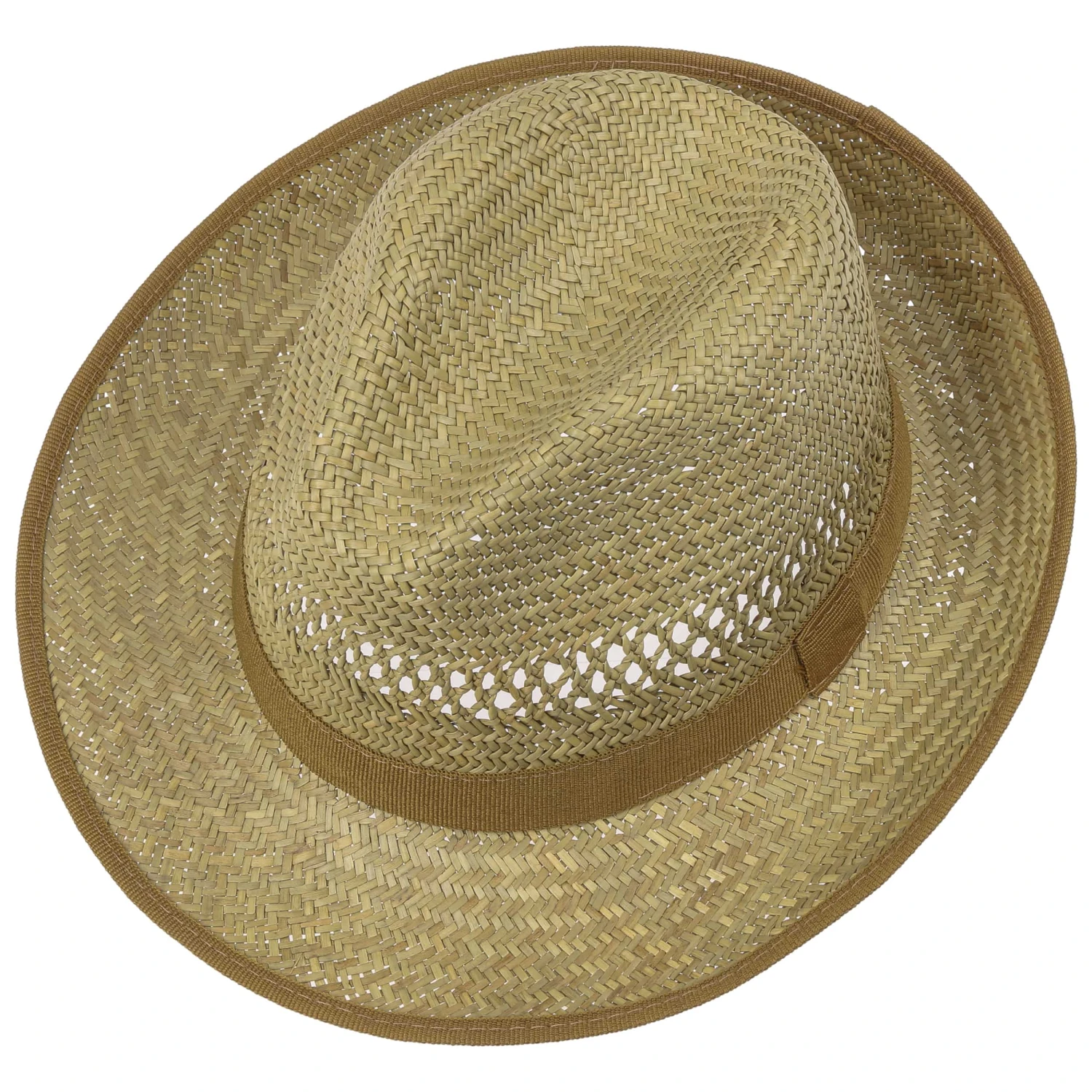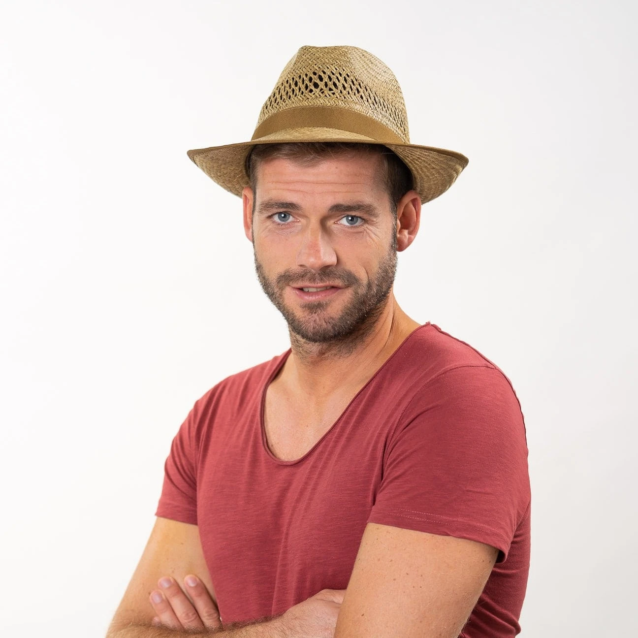 Mächtig frischen Wind spendiert der ultraleichte Strohhut durch seine löchrig geflochtene Kopfkrone, während die breite Krempe einen angenehmen Schattenplatz unter dem Herrenhut garantiert.