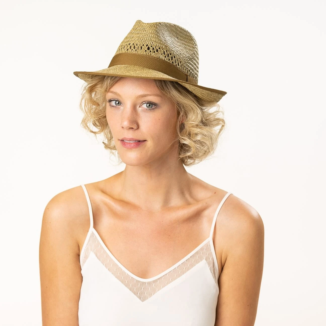 Das Naturstroh sowie die hellbraune Ripsbandgarnitur statten den komfortablen Sommerhut dabei mit einer natürlichen Optik aus, die sich daheim oder im Urlaub auf sonnenreiche Tage freut.