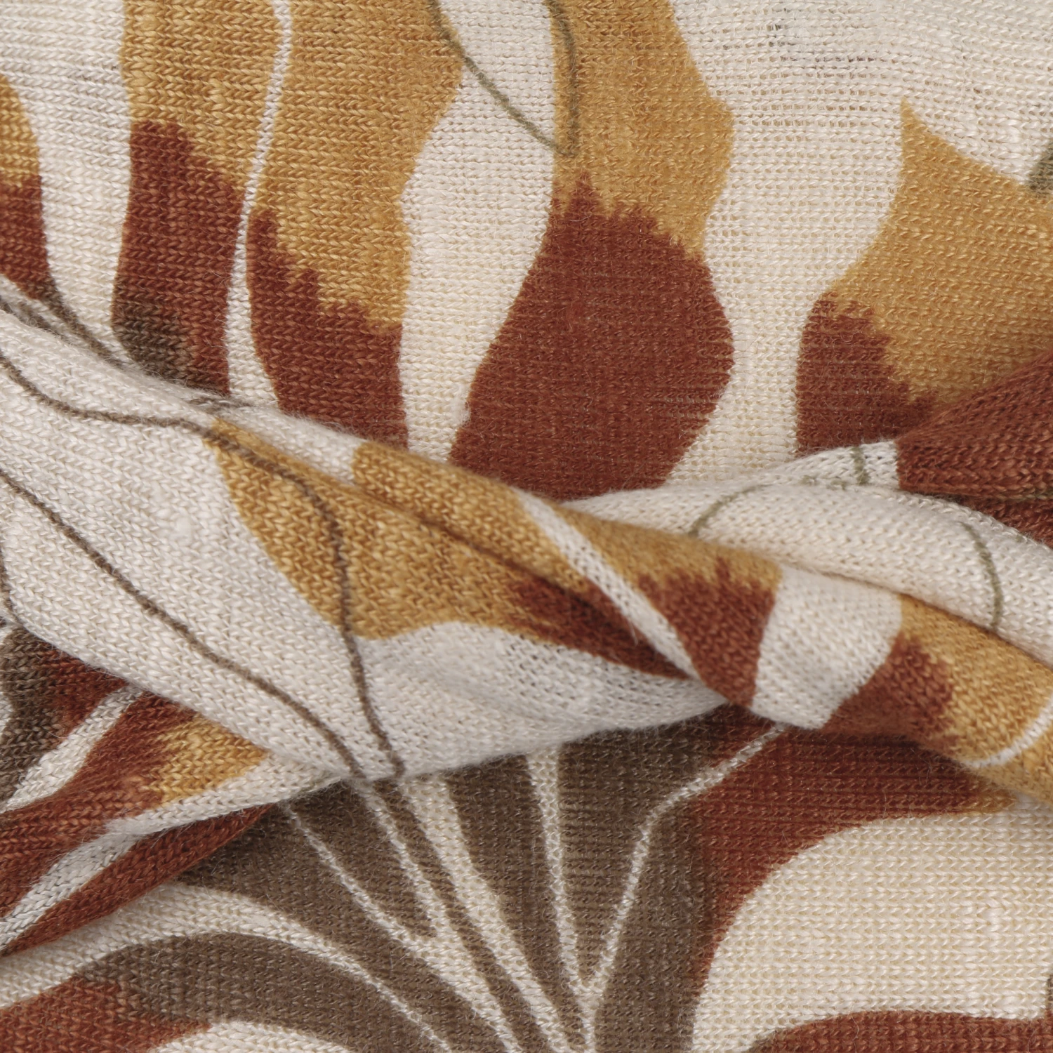 Nicht nur im Herbst zieht der Damenturban von Christine Headwear mit einem faszinierenden Blättermuster die Blicke auf sich.