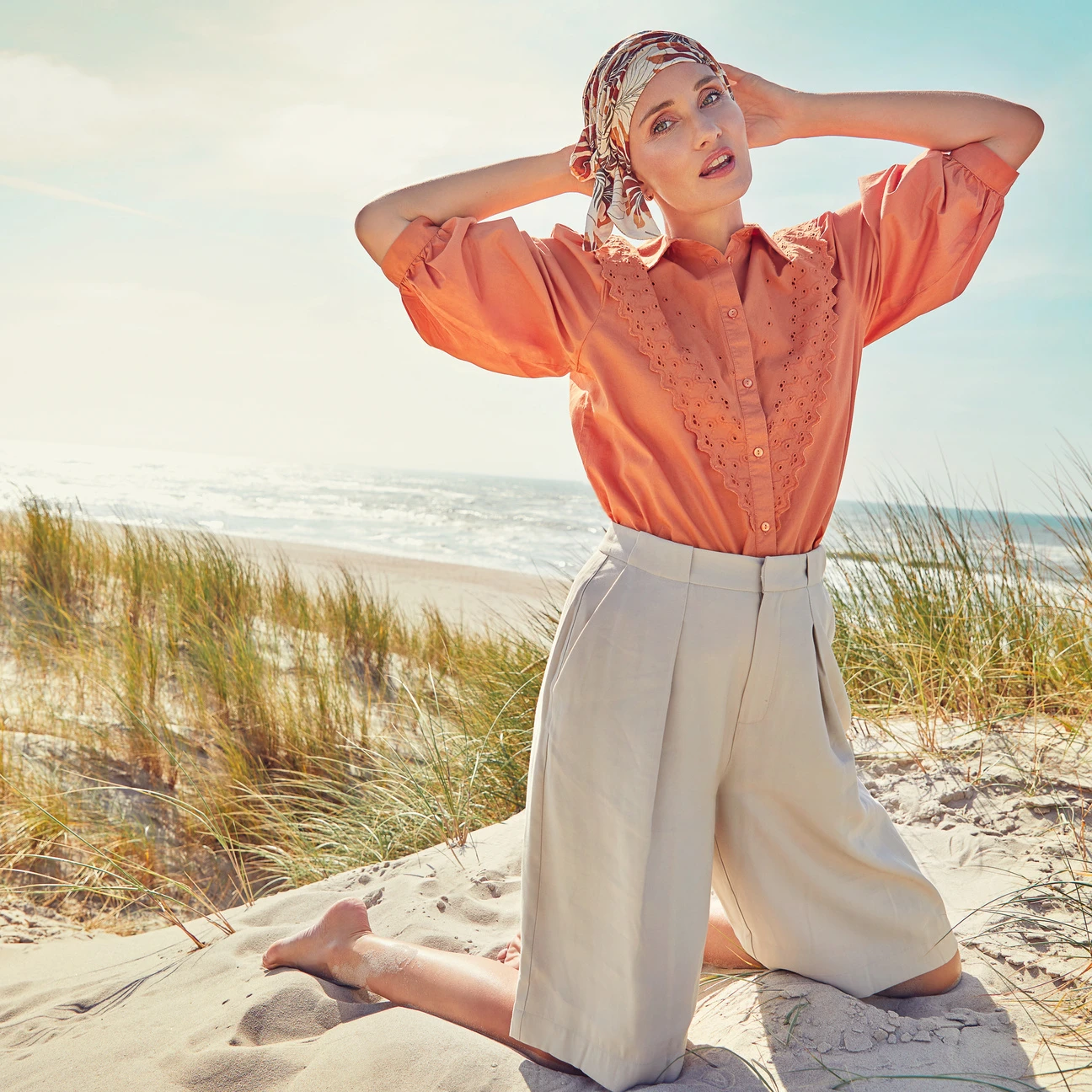 Ein Obermaterial aus klimaregulierendem Leinen, ein Futter aus weicher Viskose und die Beimischung von Elasthan verleihen ihm einen angenehmen Tragekomfort. Mit ihrer eleganten Ausstrahlung unterstützt die Kopfbedeckung auch Damen mit krankheitsbedingtem Haarausfall dabei, sich wieder modisch und attraktiv zu fühlen.