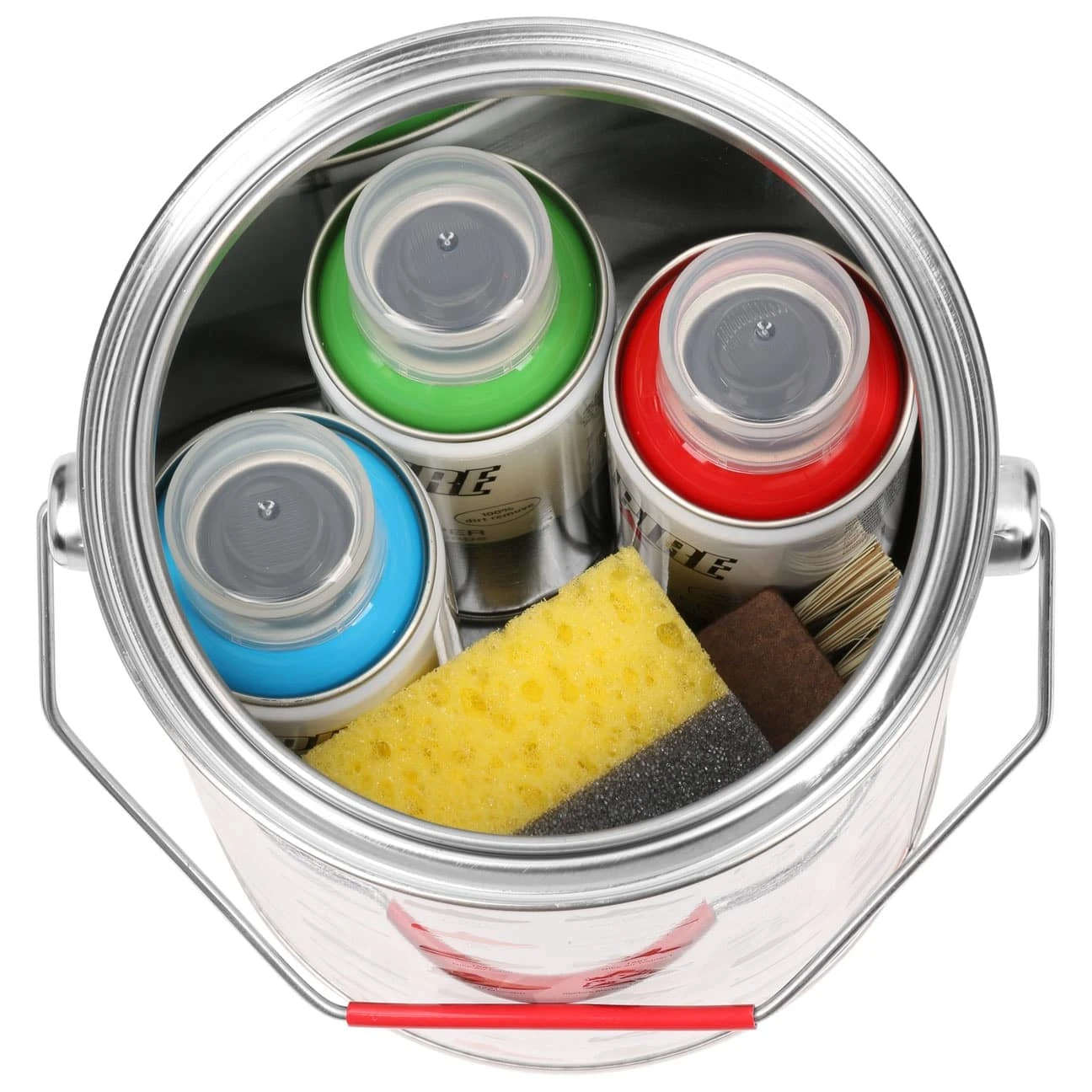 Zur idealen Anwendung gibt es direkt noch eine Bürste und einen Schwamm dazu. Das Ganze wird geliefert in einer praktischen Aufbewahrungsdose, die ihrerseits von einer Auswahl bekannter Sneakers geziert wird. Denn der Clou ist: Die Empire-Pflegeprodukte eignen sich nicht nur hervorragend für Basecaps, sondern auch für Turnschuhe.