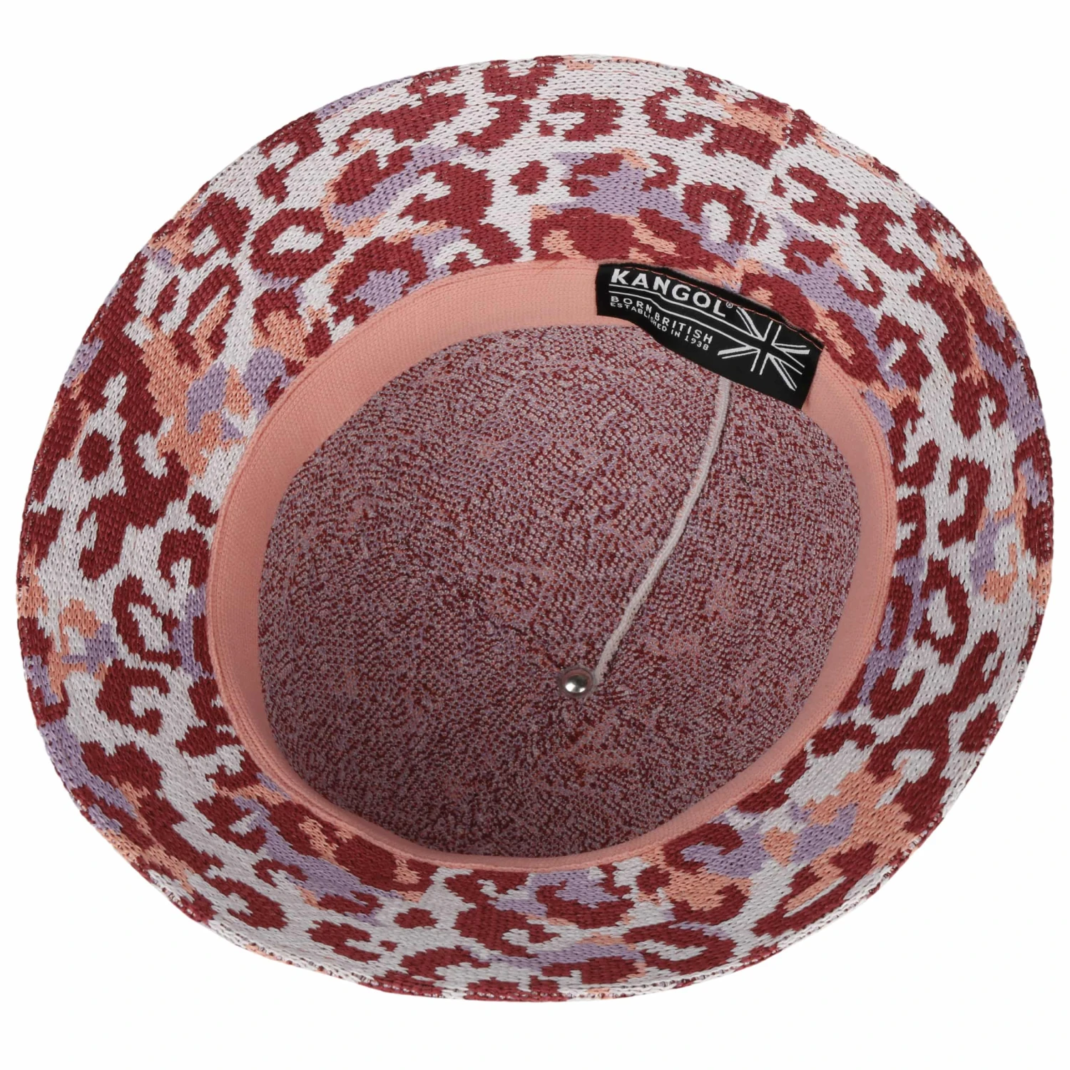 Die Blicke zieht die qualitativ hochwertige Kopfbedeckung mit tief geneigter Krempe in erster Linie mit dem ansprechend gestalteten Material, aus dem sie gefertigt ist, auf sich. Der feine Strick zeigt ein lebhaft anmutendes Leomuster, das in unterschiedlichen leuchtenden Farbtönen gehalten ist.