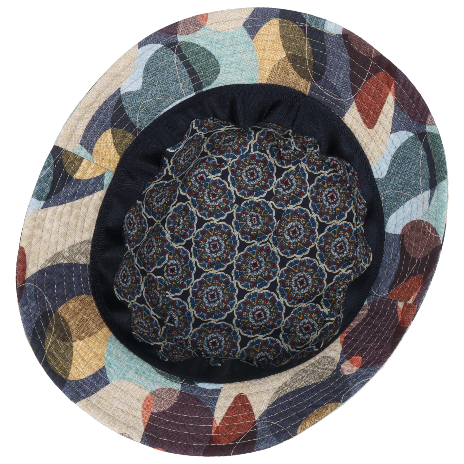 In seiner Form ähnelt die farbenfrohe Kopfdeckung dem beliebten Anglerhut aus den 60er Jahren.