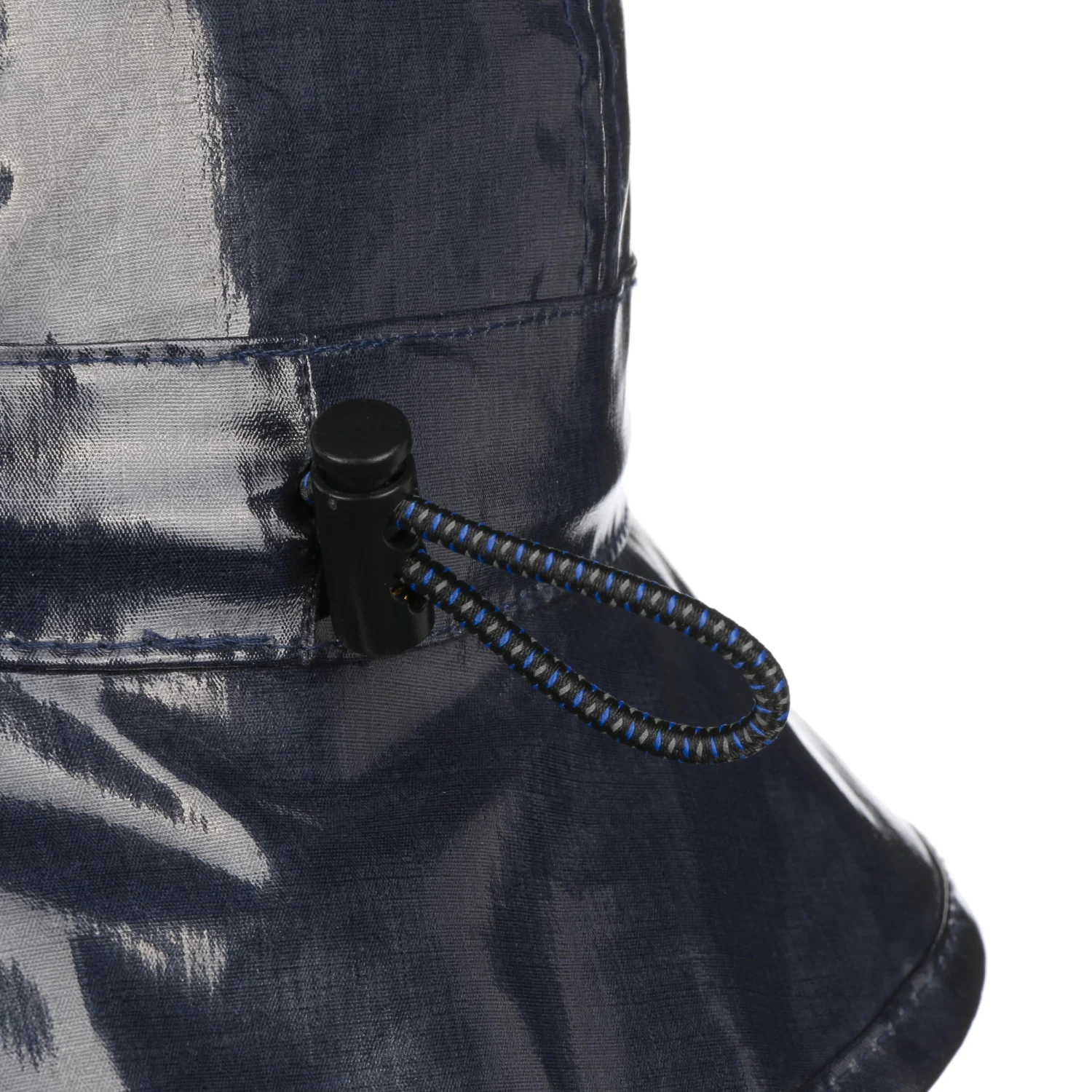 Problemlos knautschbar kann er in den Rucksack gepackt werden und wird zum zuverlässigen Begleiter an regnerischen Tagen. Der Regenhut verfügt über einen Gummizug, mit dem sich die Größe regulieren lässt. Wird der Hut tief ins Gesicht gezogen, sorgt die halbseitig transparente Krempe für gute Sicht.