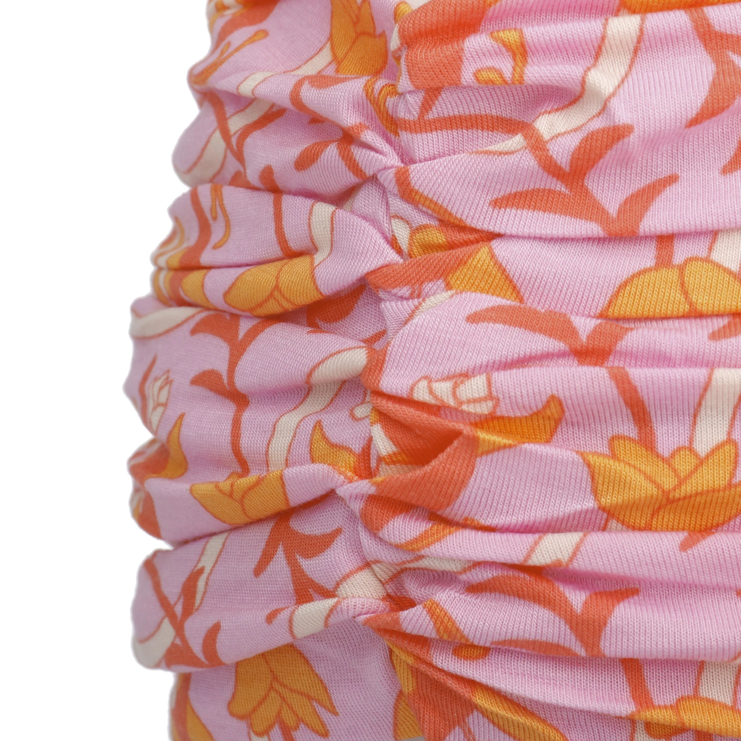 Elasthan sorgt für einen perfekten Sitz am Kopf. Ein farbenfrohes florales Muster und dekorative Falten zieren den Stoff. Für warme Sommertage eignet sich das luftig-leichte Accessoire ideal. Es schützt die Ohren zuverlässig vor Wind und Zugluft. Sommerliche Outfits wie Strandkleider oder Jumpsuits rundet das Stirnband perfekt ab.