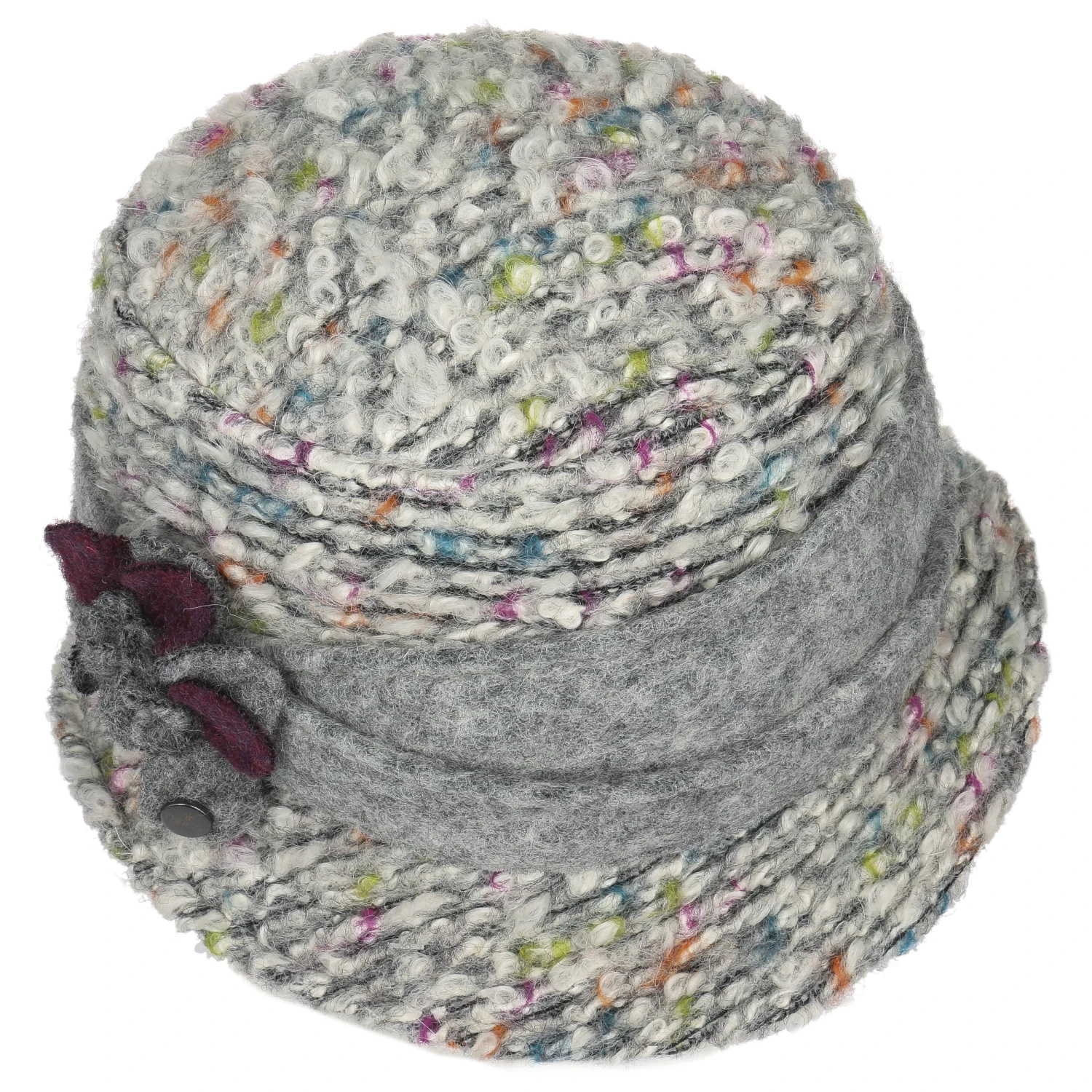 Seine mehrfarbig melierte Optik wirkt unbeschwert und dynamisch. Dazu passt die frühlingshafte Ausstrahlung der zauberhaften Blumengarnitur, die auf dem breiten unifarbenen Garniturband des Hutes sitzt. Eine kleine metallische Logo-Applikation vollendet das vielseitige Design des knautschbaren Damenhutes.