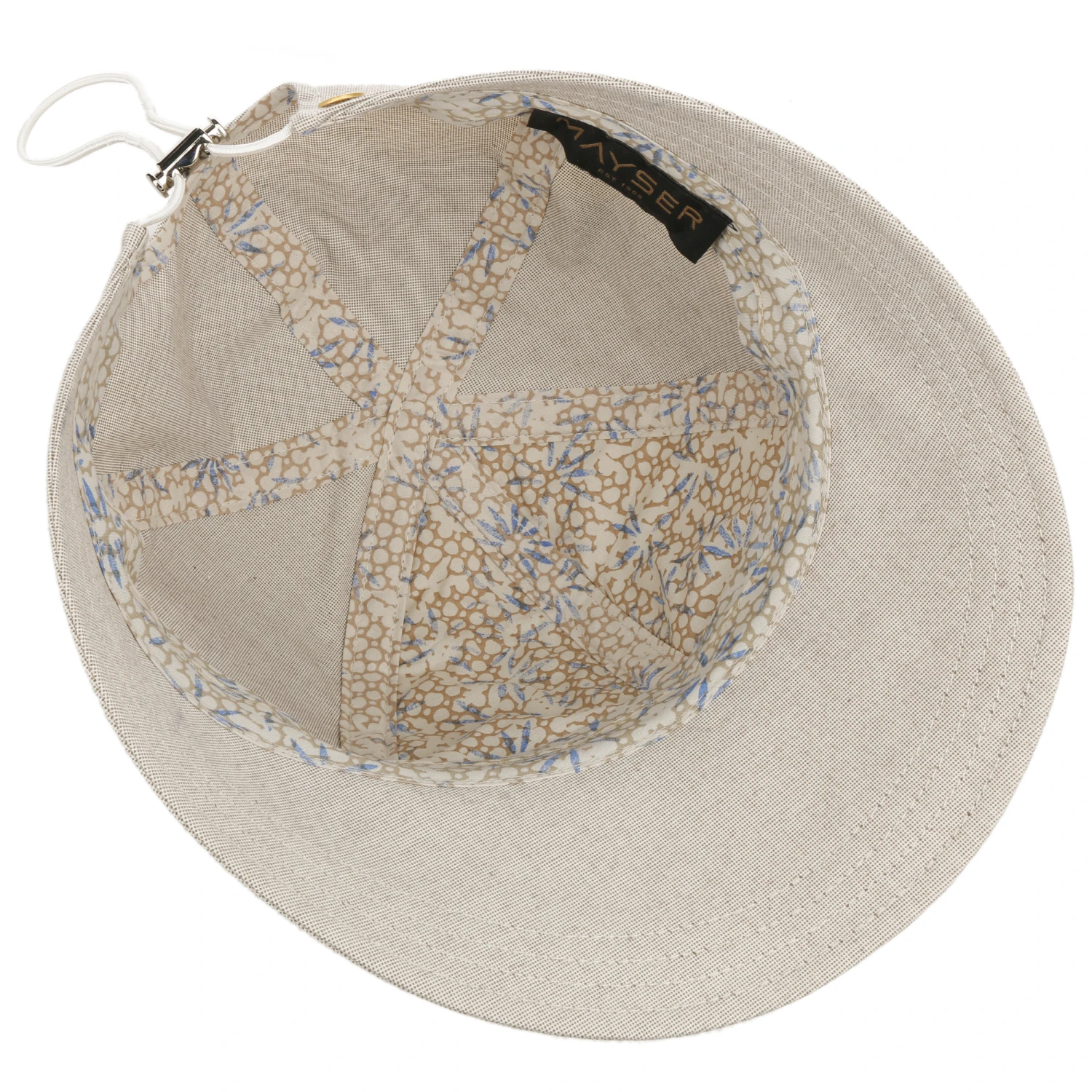 Dem Kopf schmeichelt die schicke Stoffcap mit bequemer, elastischer Qualität und bietet mit zertifiziertem UV-Filter sicheren Schutz vor aggressiven Sonnenstrahlen. Auch der Sitz ist sicher – per Gummiband am Hinterkopf lässt sich die Weite passgenau regulieren.
