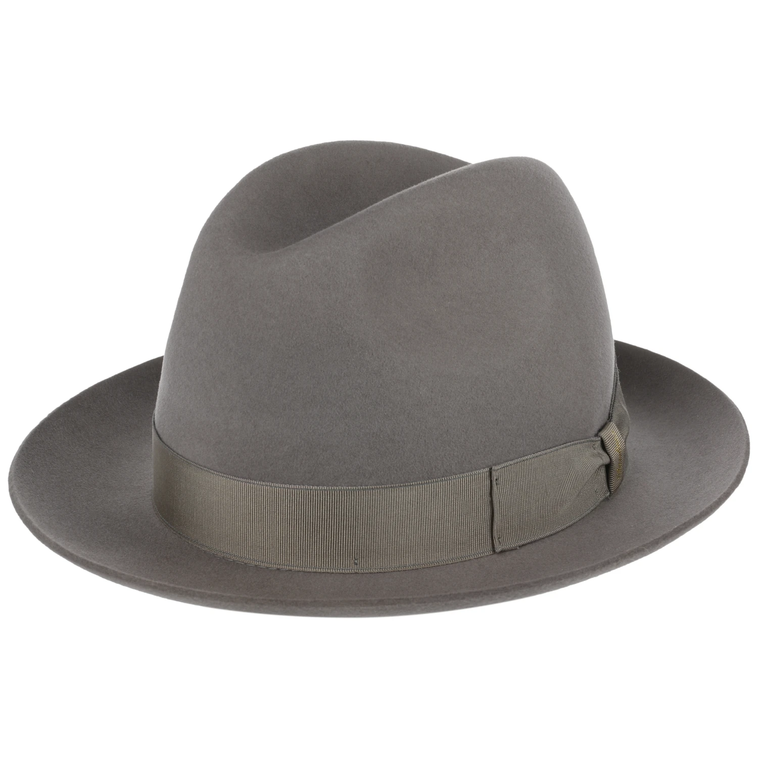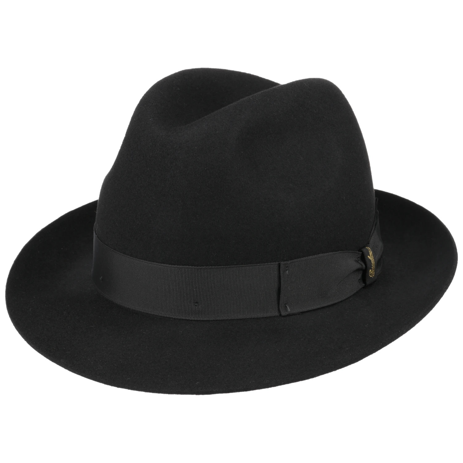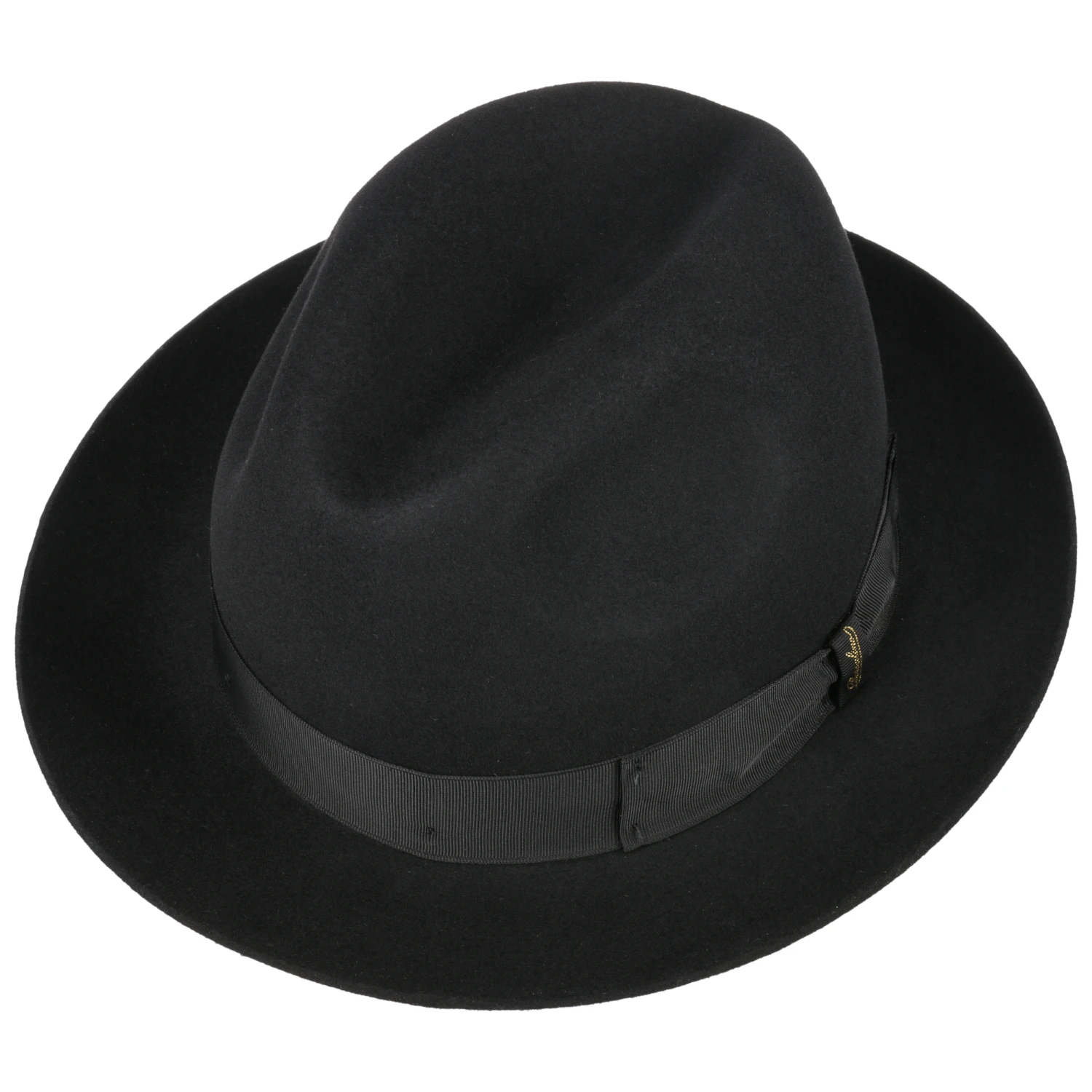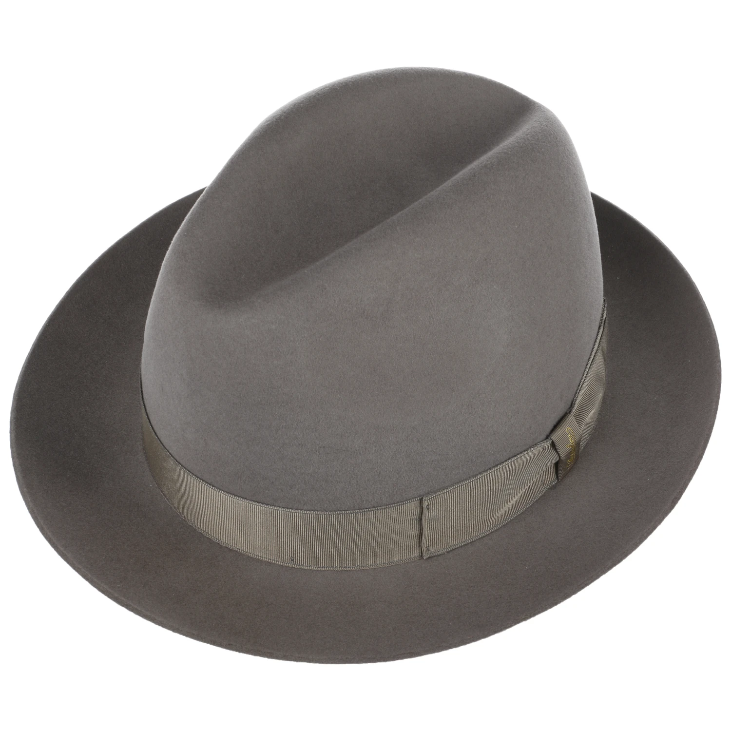 Aus dem Hause Borsalino stammt der aus feinen Wollfasern gefertigte Filzhut.