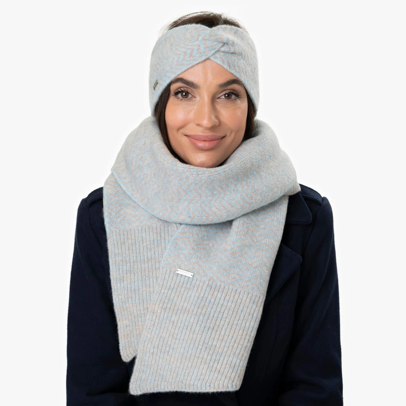 Die Ohren erhalten mit dem vorne ineinander verschlungenen Stirnband von Seeberger einen schicken Kälteschutz, der sich in angesagtem Zickzackmuster präsentiert und eine tolle Alternative zur Mütze darstellt: Vorwitzige Haarsträhnen werden aus der Stirn gehalten und die Frisur bleibt in Form.