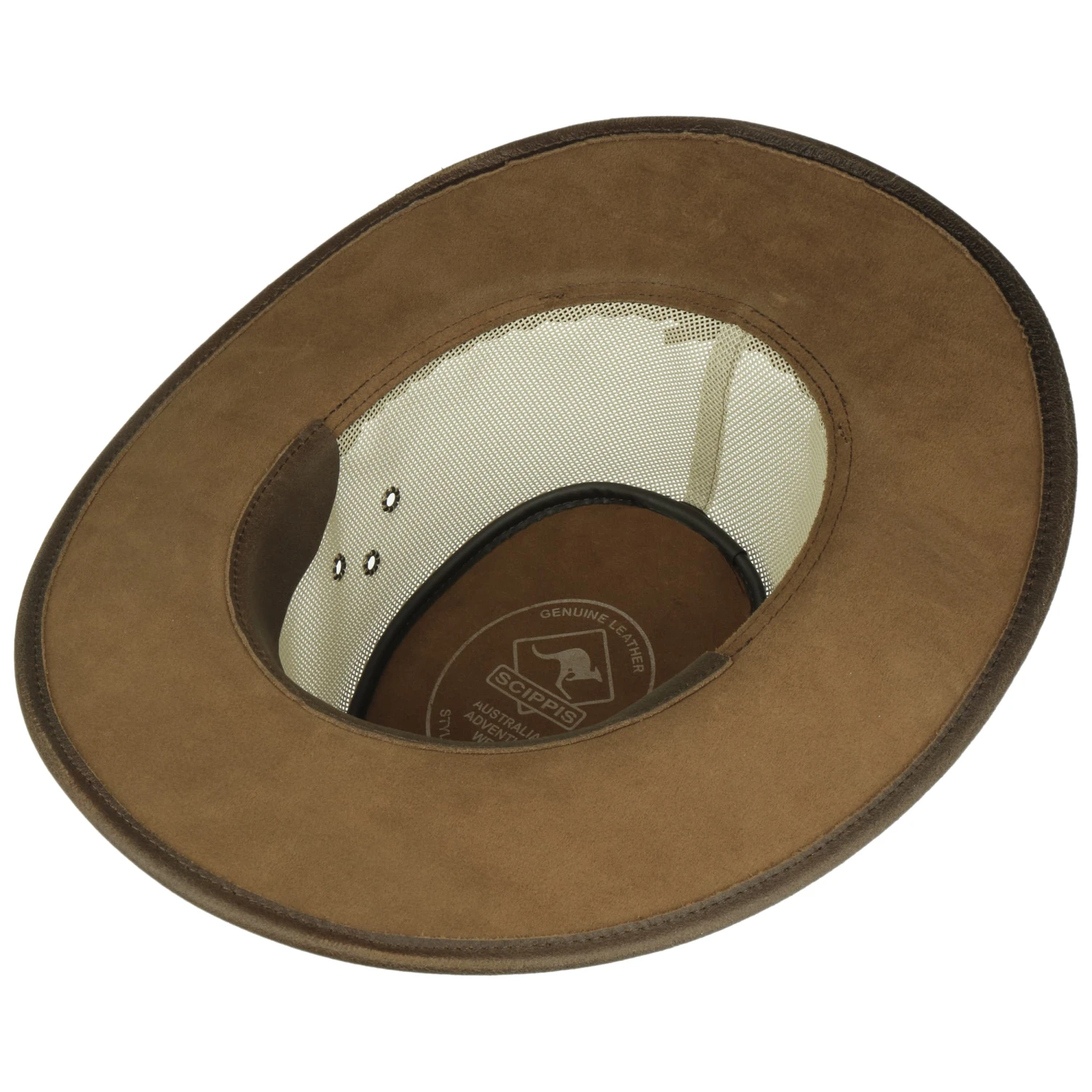 Mit seiner schattenspendenden Krempe und der luftdurchlässigen Krone ist der handgefertigte Lederhut von Scippis dem sonnig heißen Klima im Outback optimal gewachsen.