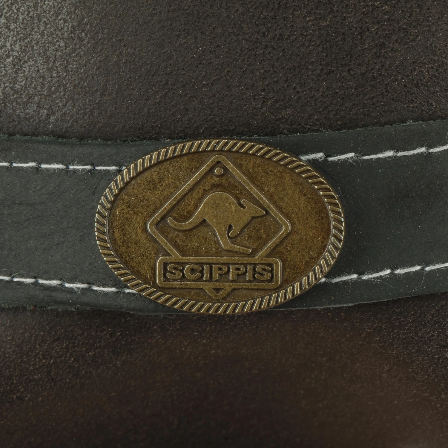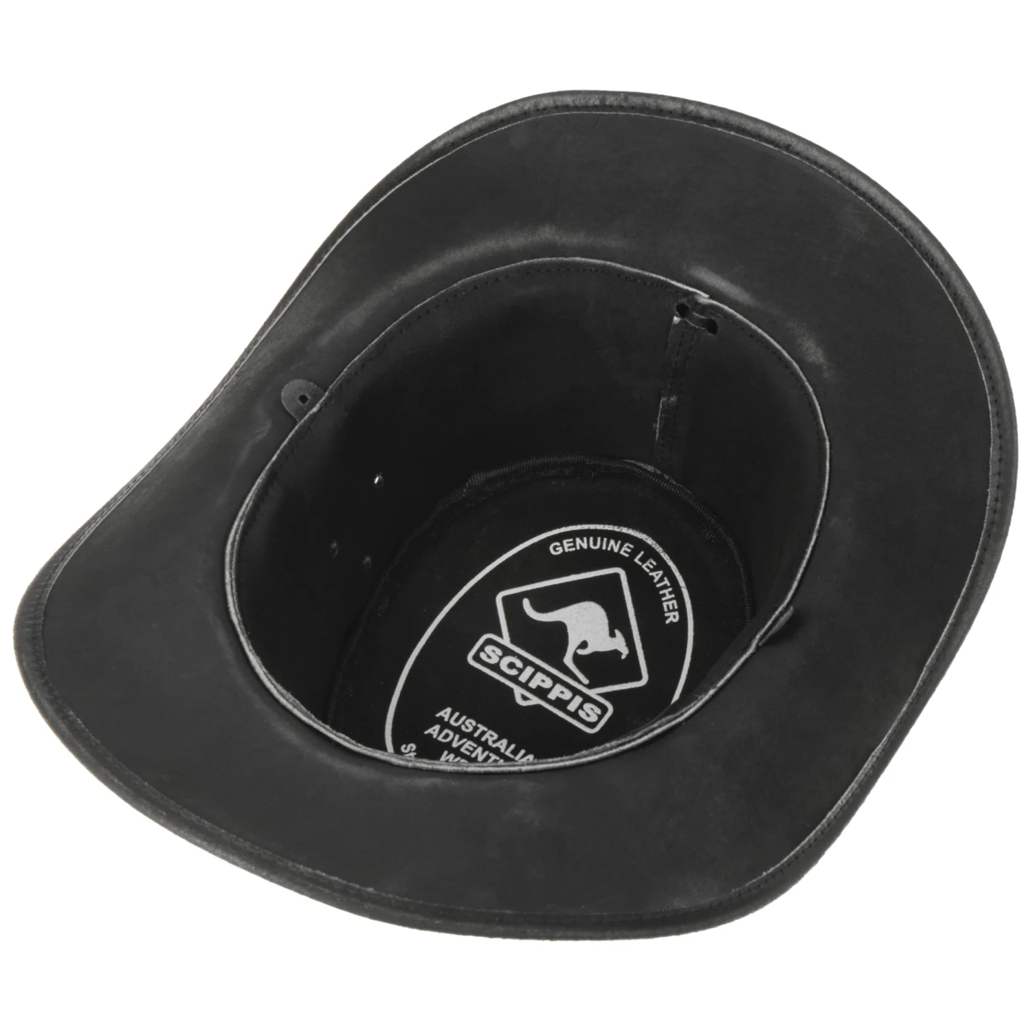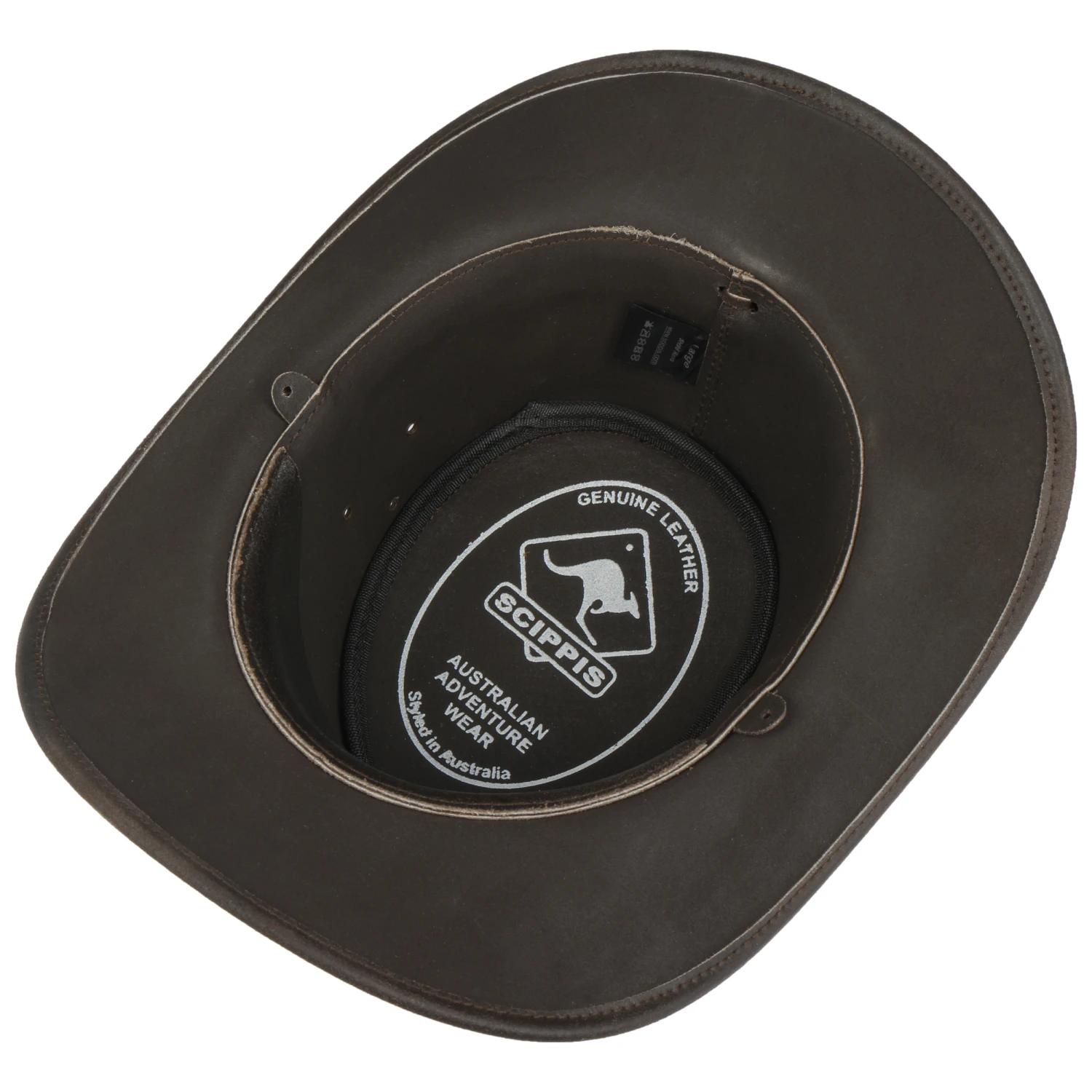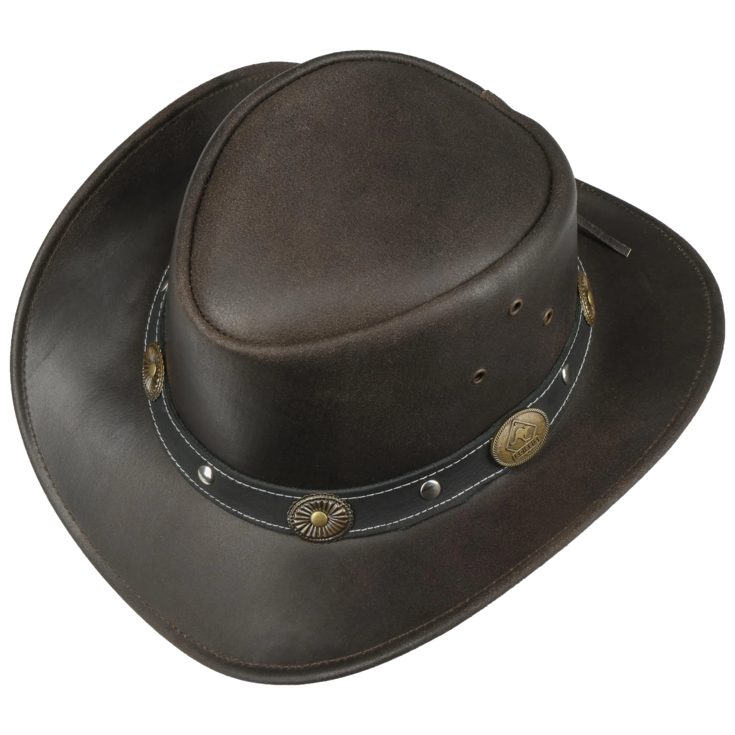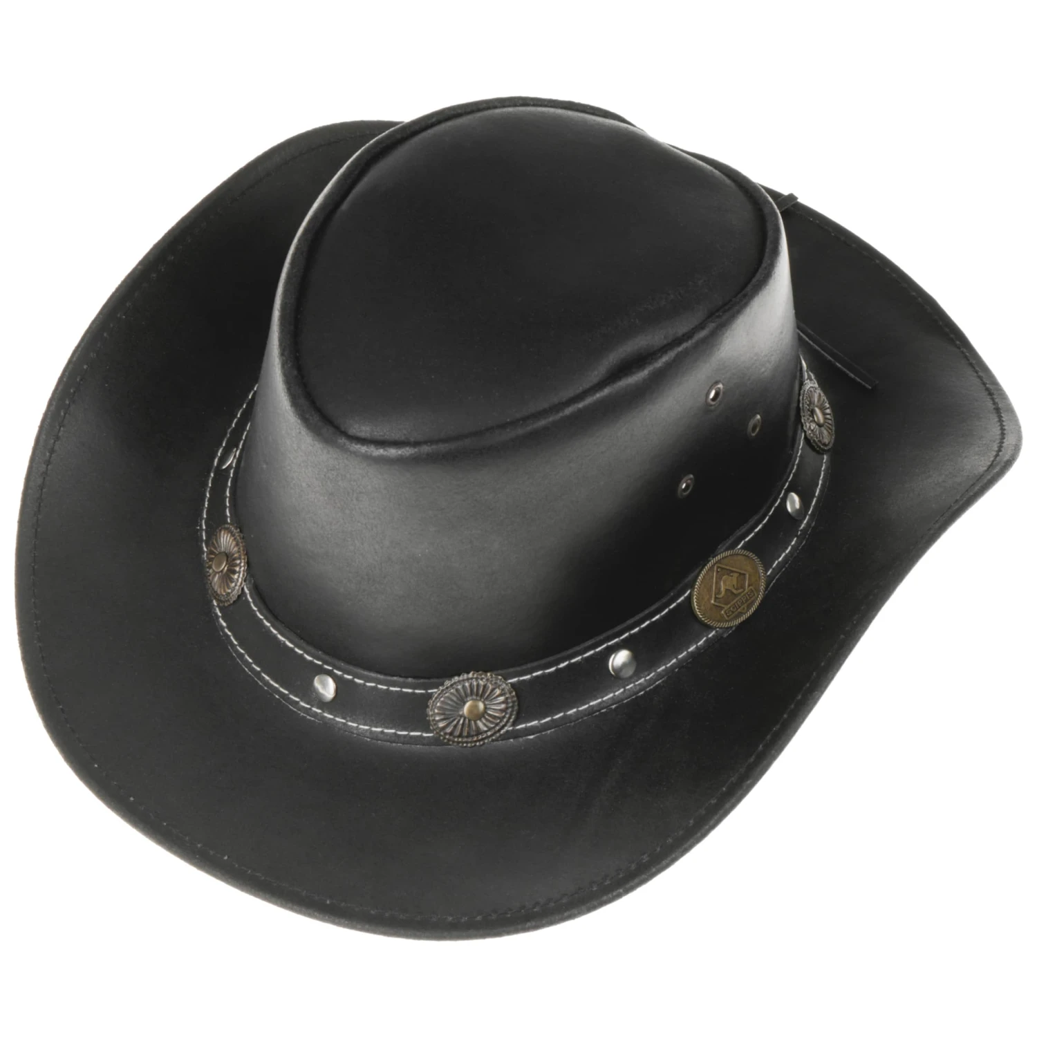 Die metallenen Antik-Conchos am exklusiven Nietenband sind die Blickfänger am Rindslederhut von Scippis.
