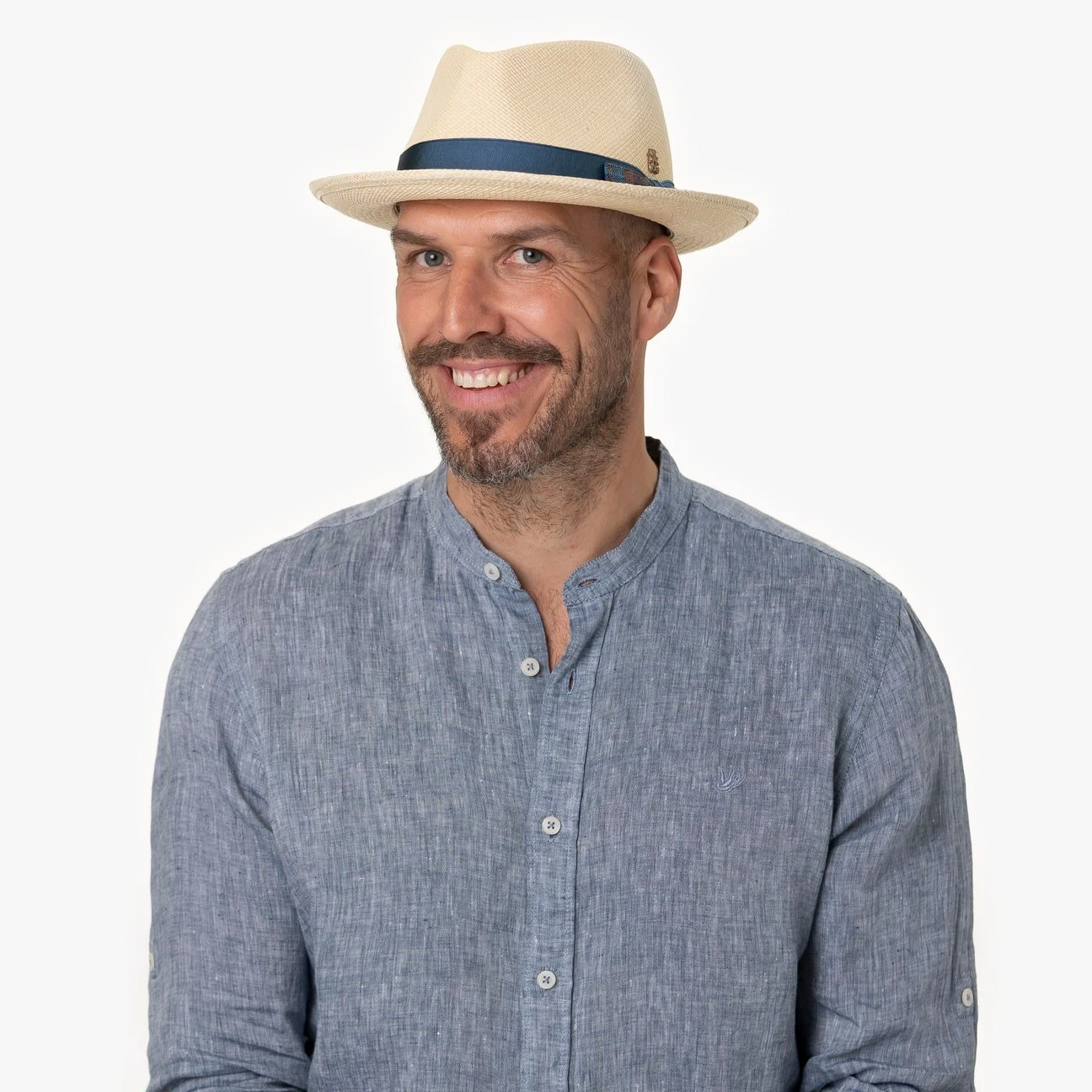 Wechseln sich sommerliche Regenschauer mit strahlendem Sonnenschein ab, weiß sich der Kopf unter dem Fedora von Mayser bestens behütet: Aus Panamastroh in Ecuador sorgfältig verwoben, ist die Oberfläche mit wasserabweisenden Eigenschaften ausgestattet, ergänzt durch einen nach Standard 801 zertifizierten UV-Schutz.