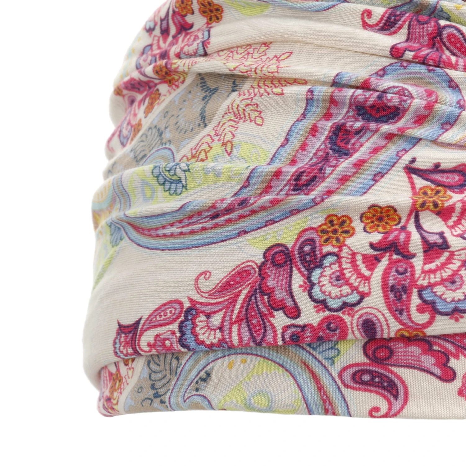 Elasthan sorgt für die nötige Flexibilität und eine perfekte Passform der Kopfbedeckung mit zauberhaftem Paisleymuster. Der anschmiegsame Stoff ist in dekorative Falten gelegt. Eine seitliche Applikation in Blütenform ergänzt das florale Design des Kopftuchs in OEKO-TEX®-Qualität harmonisch.