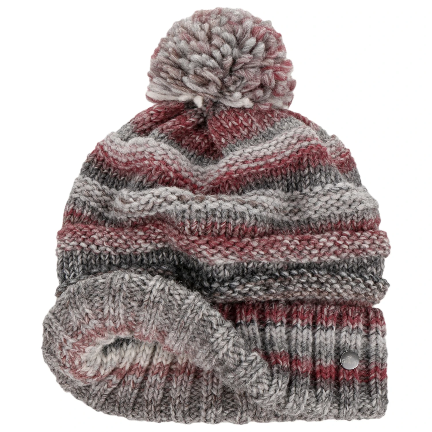 Das dreidimensionale Strickmuster der trendigen Bommelmütze von Lierys stapelt sich in fülliger Ballonform bis weit über den Hinterkopf, um dort mit einem lässig fallenden Oversize-Format den Winter begrüßen zu können.