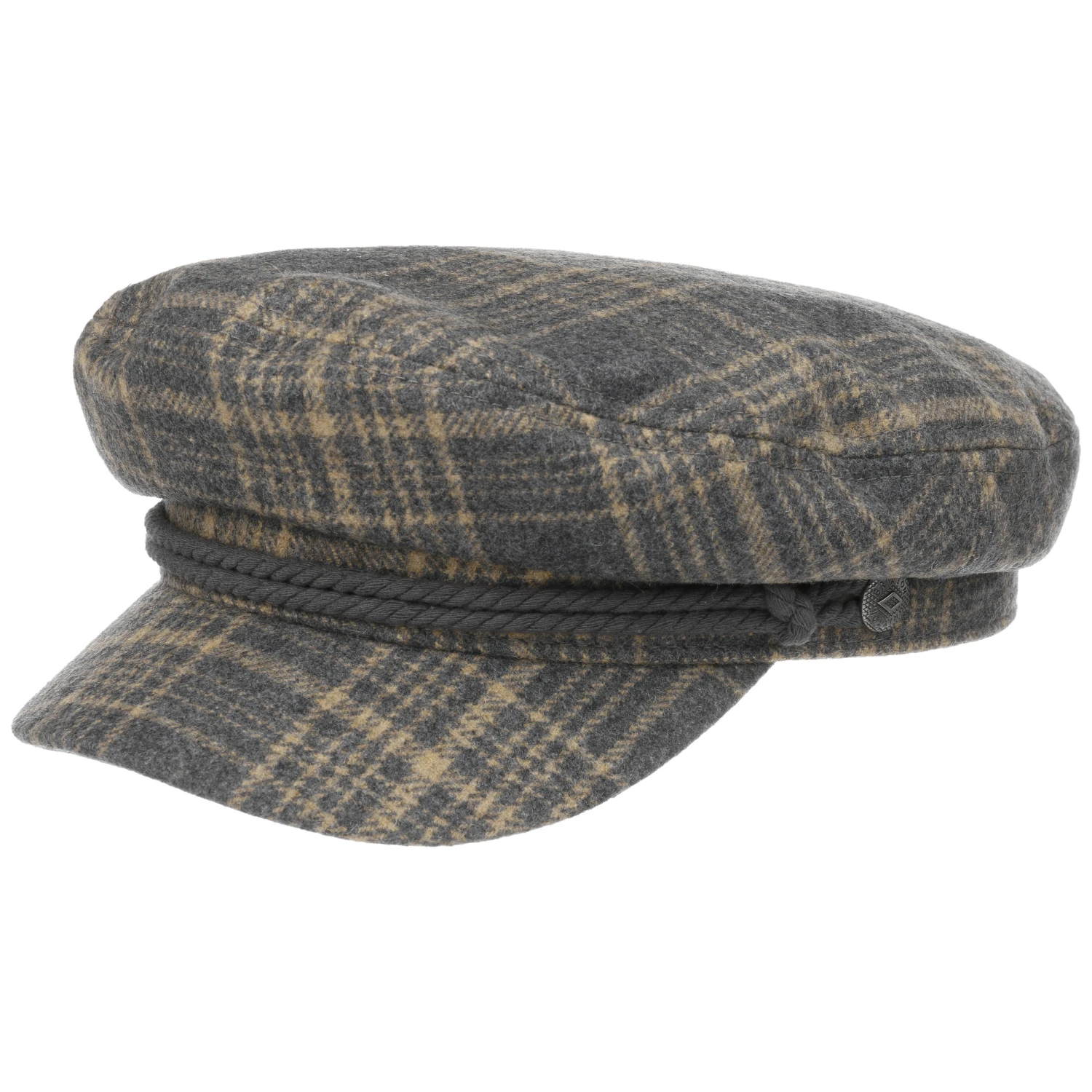 Auch ausgemachten Landratten steht die füllig zugeschnittene Baker-Boy-Mütze mit dem ansprechenden Karomuster und unifarbener Kordelgarnitur ausgezeichnet zu Gesicht.