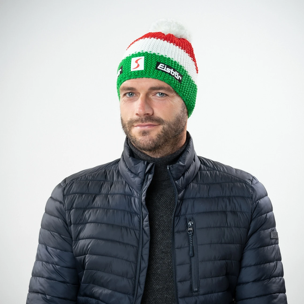 Einfach die kultige Strickmütze in den Farben der italienischen Flagge aufgesetzt und schon holt man sich sein Lieblingsland in heimische Skigebiete. Die griffige Wintermütze von Eisbär hält dank hochwertiger Schurwollmischung und flauschigem Fleecefutterrand ihr urgemütliches Wärmeversprechen und setzt mit dem voluminösen Pompon ein unübersehbar trendiges Zeichen auf die Piste.