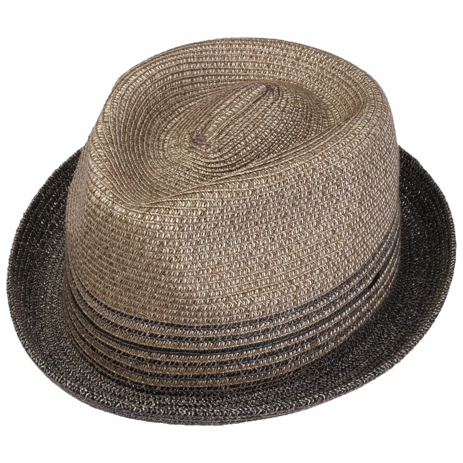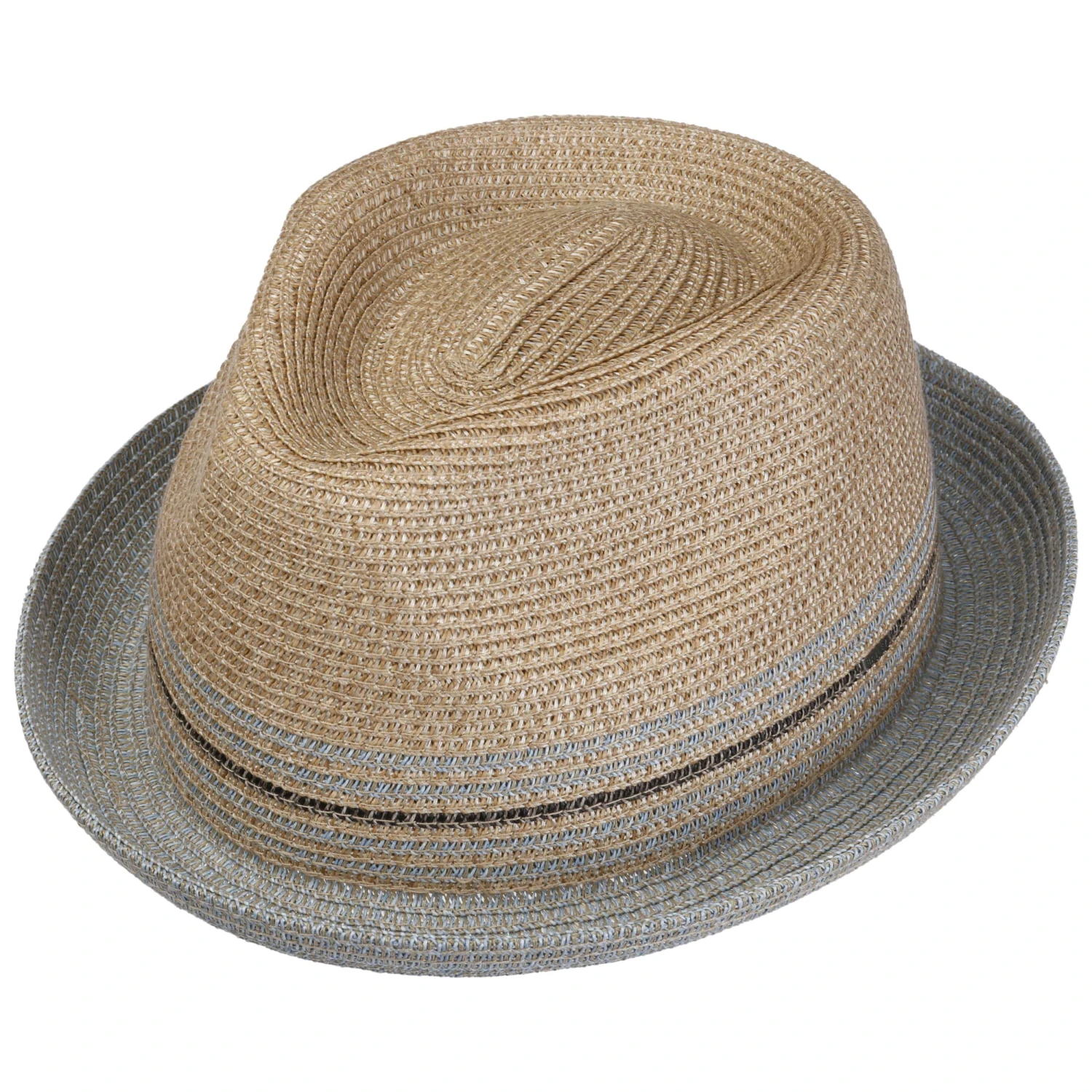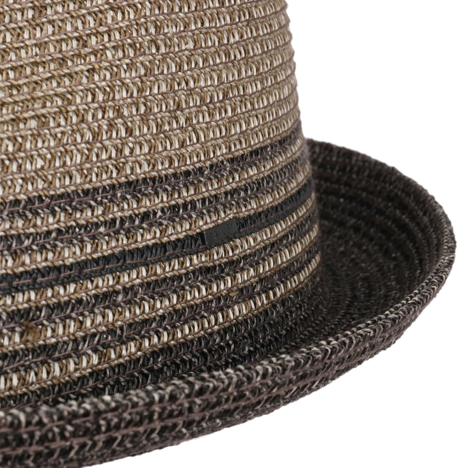 Er ist aus einem zur Hälfte aus Papierstroh bestehendem Materialmix gefertigt und mit einem Baumwollstoff komfortabel gefüttert. Die nach oben gebogene Krempe des Hutes hebt sich farblich vom Kopfteil ab. Darin eingearbeitete Streifen dienen anstelle eines Hutbandes als Verzierung und sorgen für einen harmonischen Übergang.