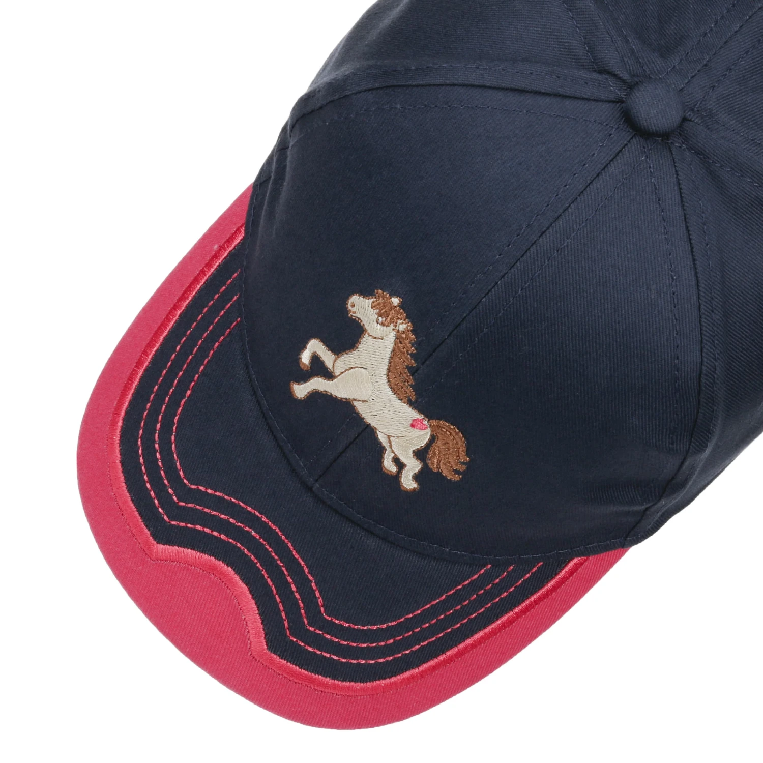 Diese größenverstellbare Kappe ist aus einem hautsympathischen Baumwollstoff gefertigt und erobert mit dem Motiv eines Pferdes auf der Vorderseite Kinderherzen im Handumdrehen.