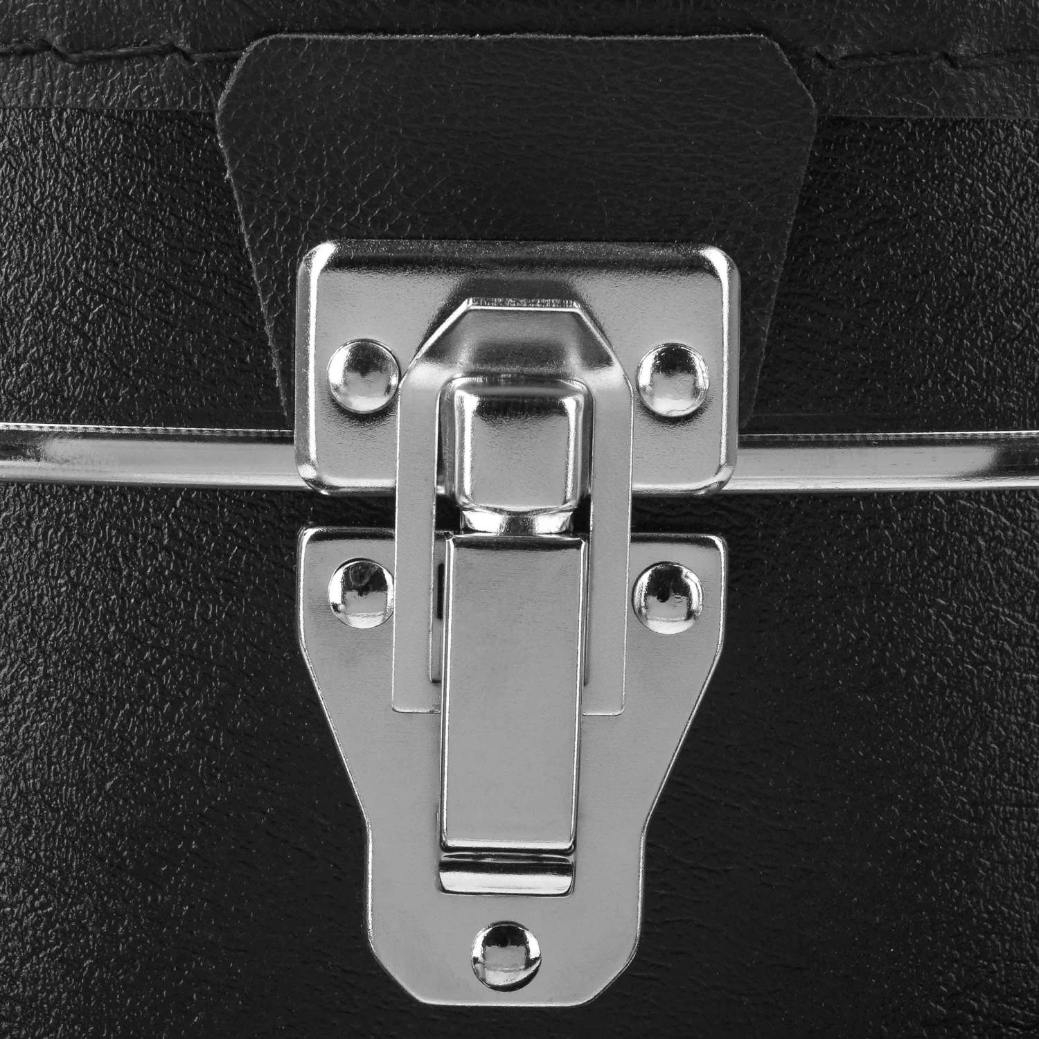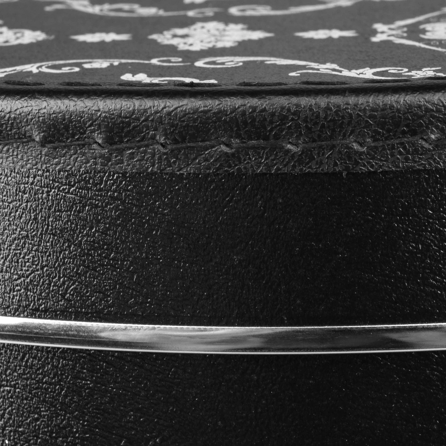Dieser robuste Hutkoffer aus Kunstleder erstrahlt in einem royal anmutenden Design, das sich über den gesamten Deckel zieht.