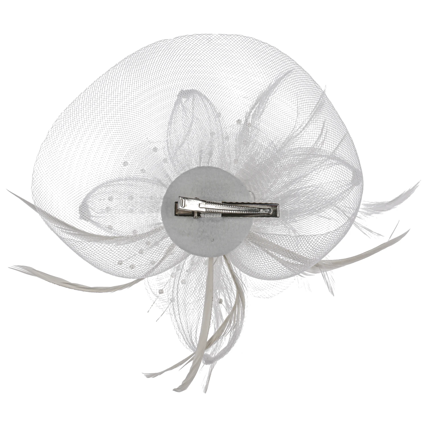 Raffiniert in Szene gesetzte Details machen den Look des hochwertigen Anlass-Accessoires aus. Auf seinem großflächigen Netz kommt das üppige Arrangement mit schimmernden Perlen und Federn besonders schön zur Geltung. Der mit einem Clip ausgestattete Fascinator kann mit oder ohne den dazugehörigen schmalen Reif genutzt werden.