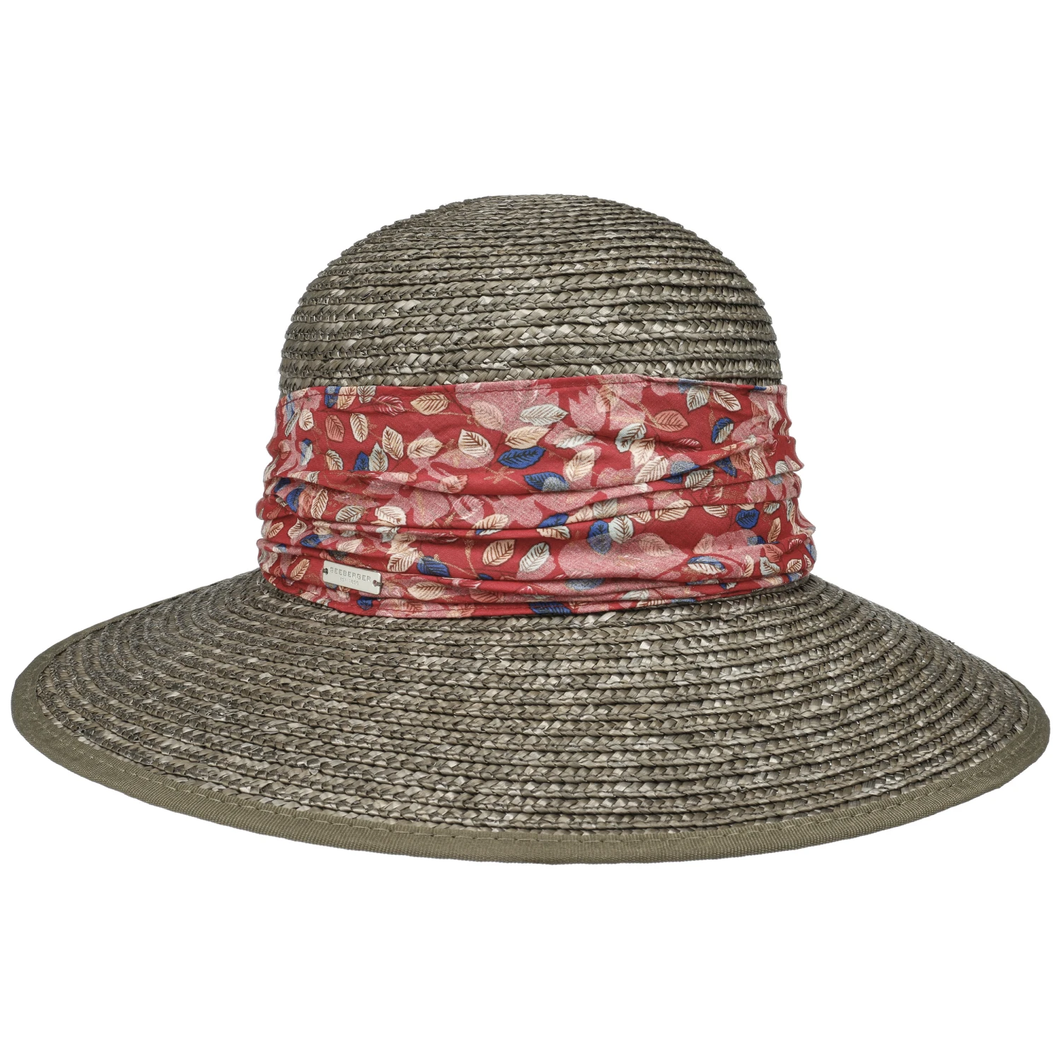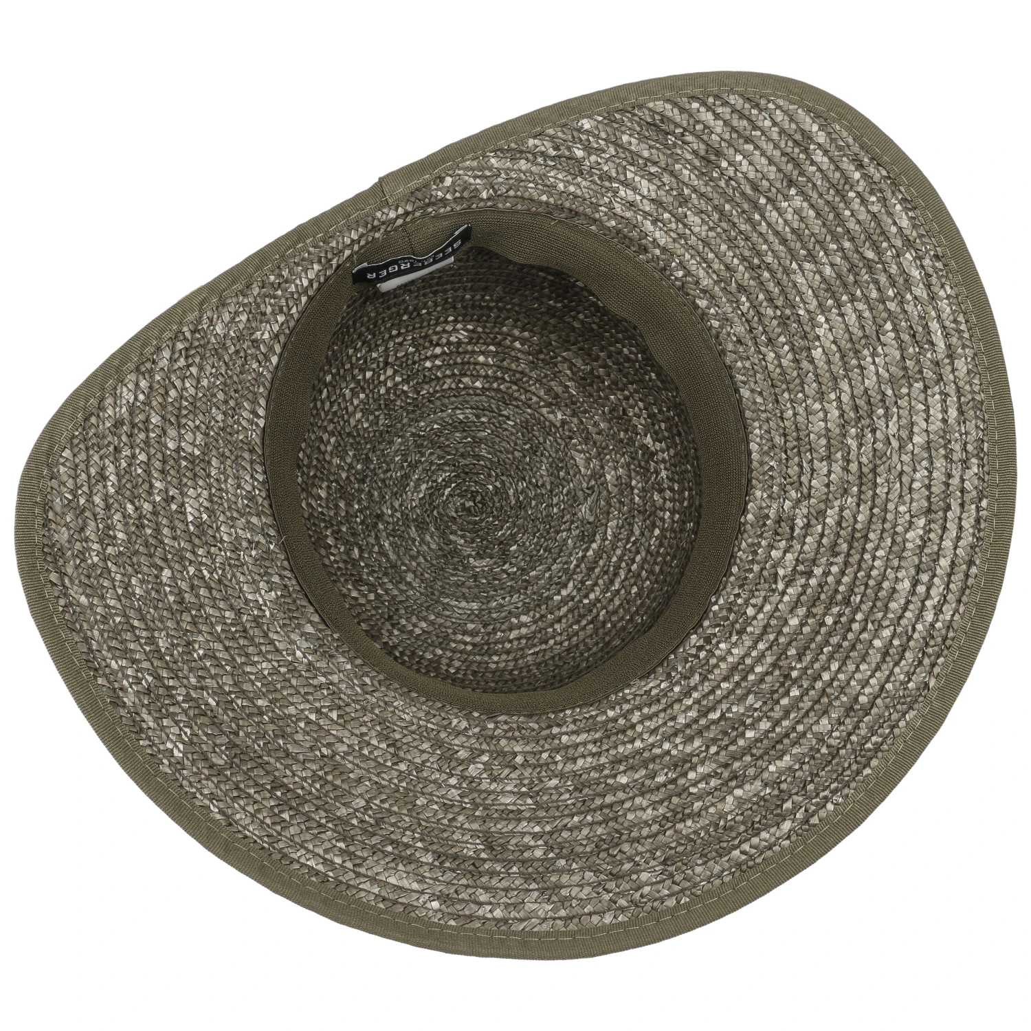 Sommerleichte Strohborten in ausgesuchter melierter Farbgebung formen sich zu dem Strohhut von Seeberger, der mit der vorne schick verlängerten Krempe einer Schute aufwartet und seiner Dame ein unbeschwertes Tragegefühl spendiert.
