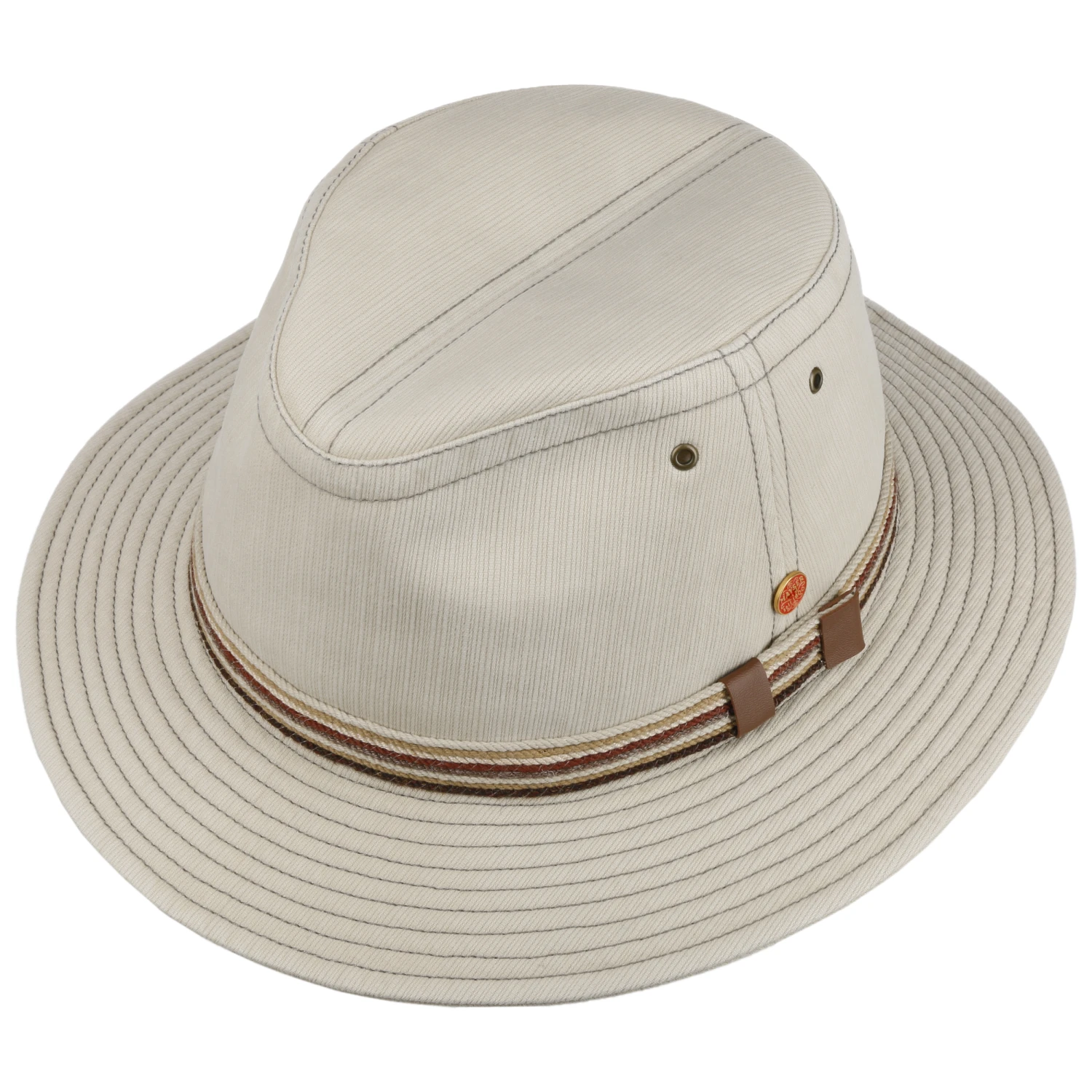 Seitliche Luftösen und ein 80-facher UV-Schutz bringen zusätzlich optimale Eigenschaften mit, um den bequemen und knautschbaren Traveller für jegliche Expeditionen fit zu machen. Die mehrreihige Kordelgarnitur in naturnahen Farben mit ledernen Elementen unterstreicht den natürlichen Charme des robusten Hutes.