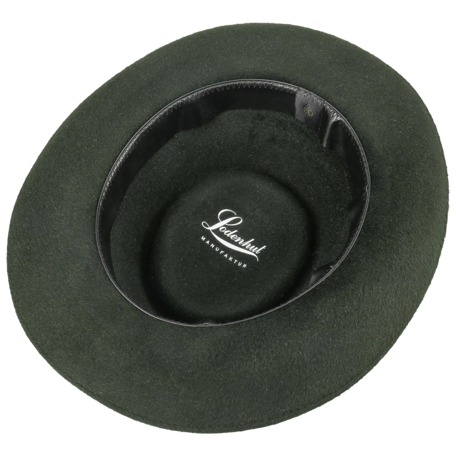 Der edle Haarfilzhut aus der Lodenhut Manufaktur reizt mit einer charismatischen Eleganz, die Aufmerksamkeit erregt.