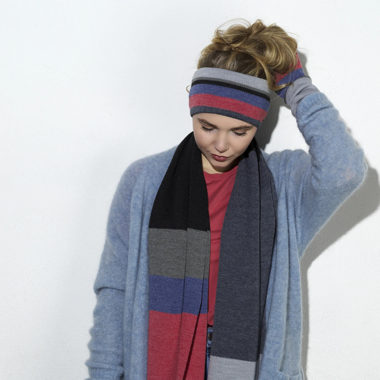 Für den anschmiegsamen Kälteschutz sorgen eine Materialmischung aus weicher Wolle und Kunststofffasern in Recycling-Qualität sowie flauschweiches, wärmeisolierendes Futter aus Fleece. Doch das ist nicht das einzige Argument der Ohrenwärmer, denn mit seinem farbigen Streifenlook gefällt es auch optisch und setzt dem Outfit einen tollen modischen Akzent.