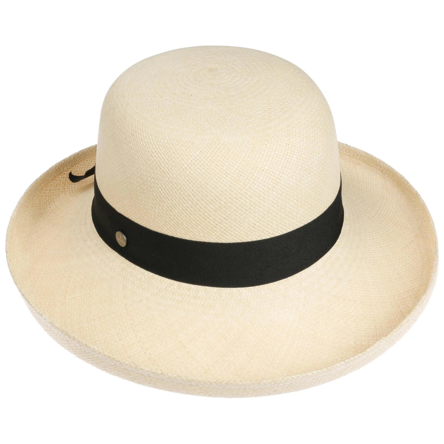Der von Hand gefertigte Strohhut aus dem Hause Lierys zieht mit seinem asymmetrischen Design und einer kontrastierenden Farbkombination die Blicke auf sich.