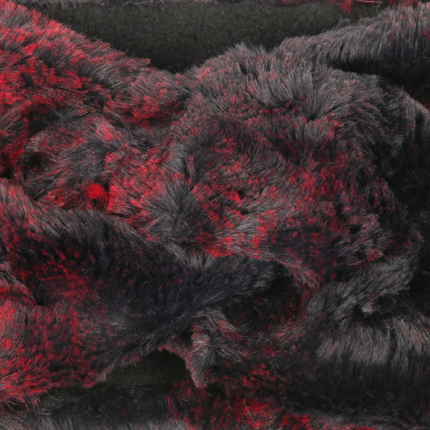 Das flauschige Material zeigt sich zweifarbig meliert und mit einem feinsinnig anmutenden Glanz. Der in der Front eingesetzte Knoten kreiert dynamisch wirkende Falten. Die daraus resultierenden Licht- und Schattenspiele erweisen sich als anregender Blickfang.