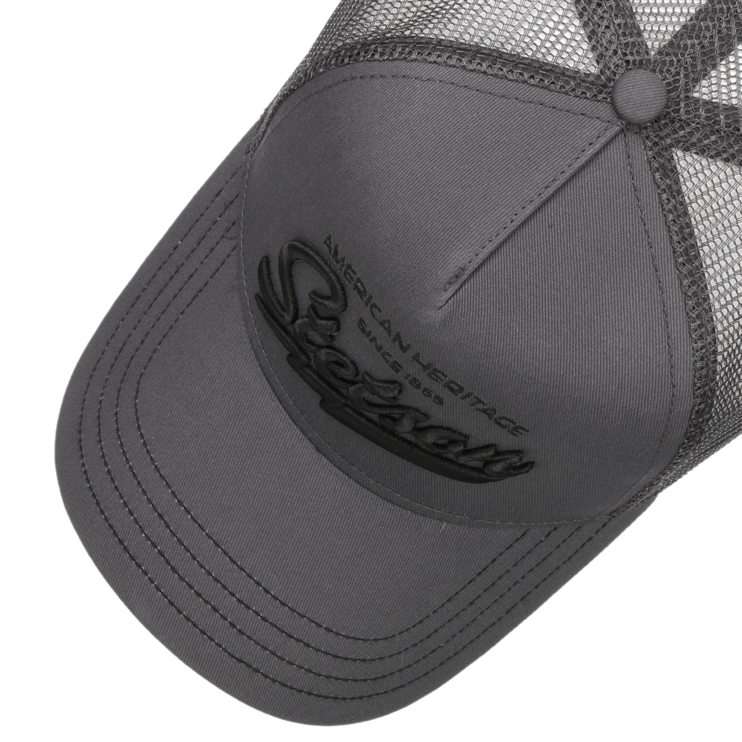 Große Mesh-Einsätze bieten eine hervorragende Luftzirkulation, während der großflächige Schirm vor Sonnenblendung schützt. Ein Vintage-Schriftzug mit Bezug zur Marke Stetson sowie farblich abgesetzte Ziernähte machen die hochwertig verarbeitete Kappe zum Blickfang. So eignet sich das Modell auch wunderbar für trendbewusste urbane Street-Styles.