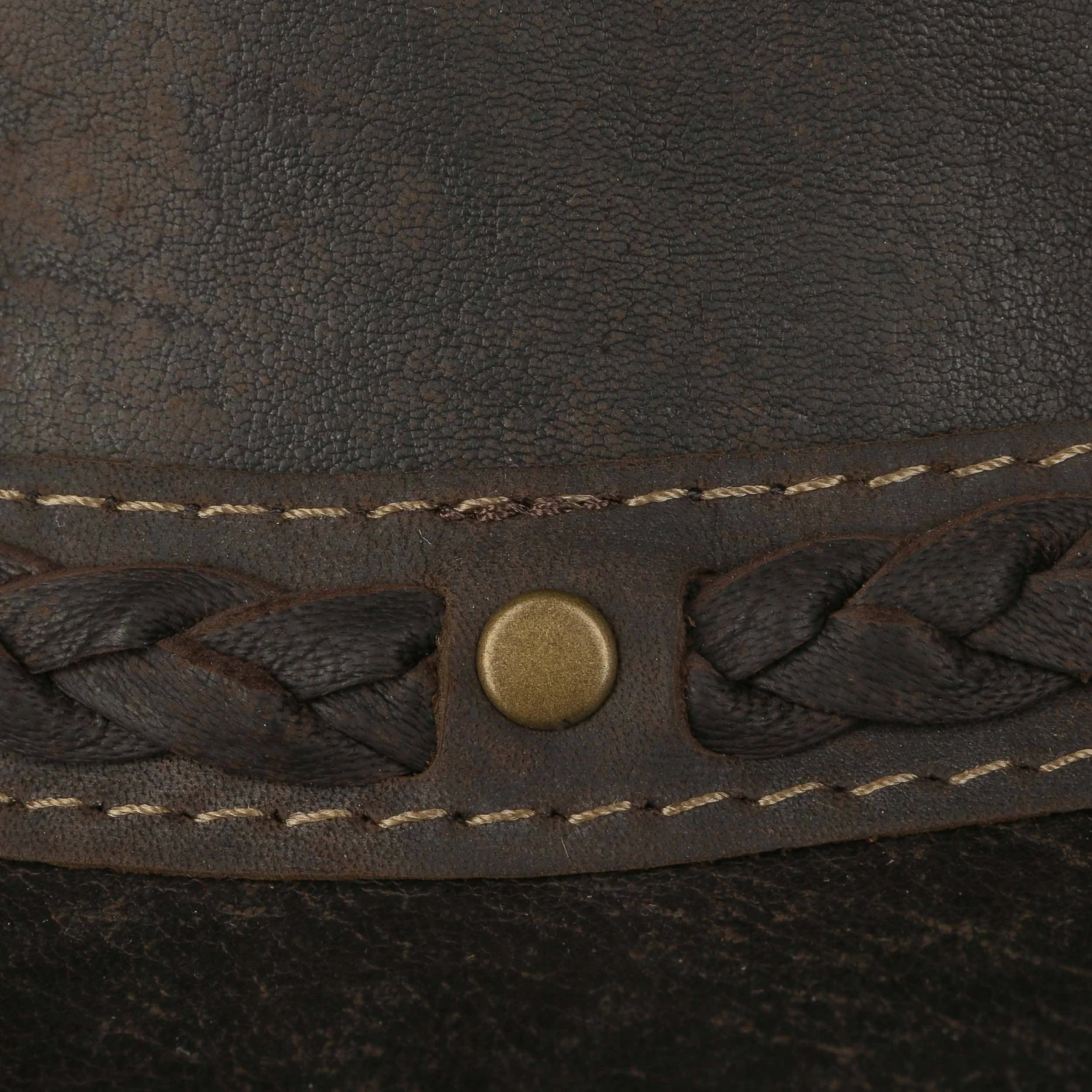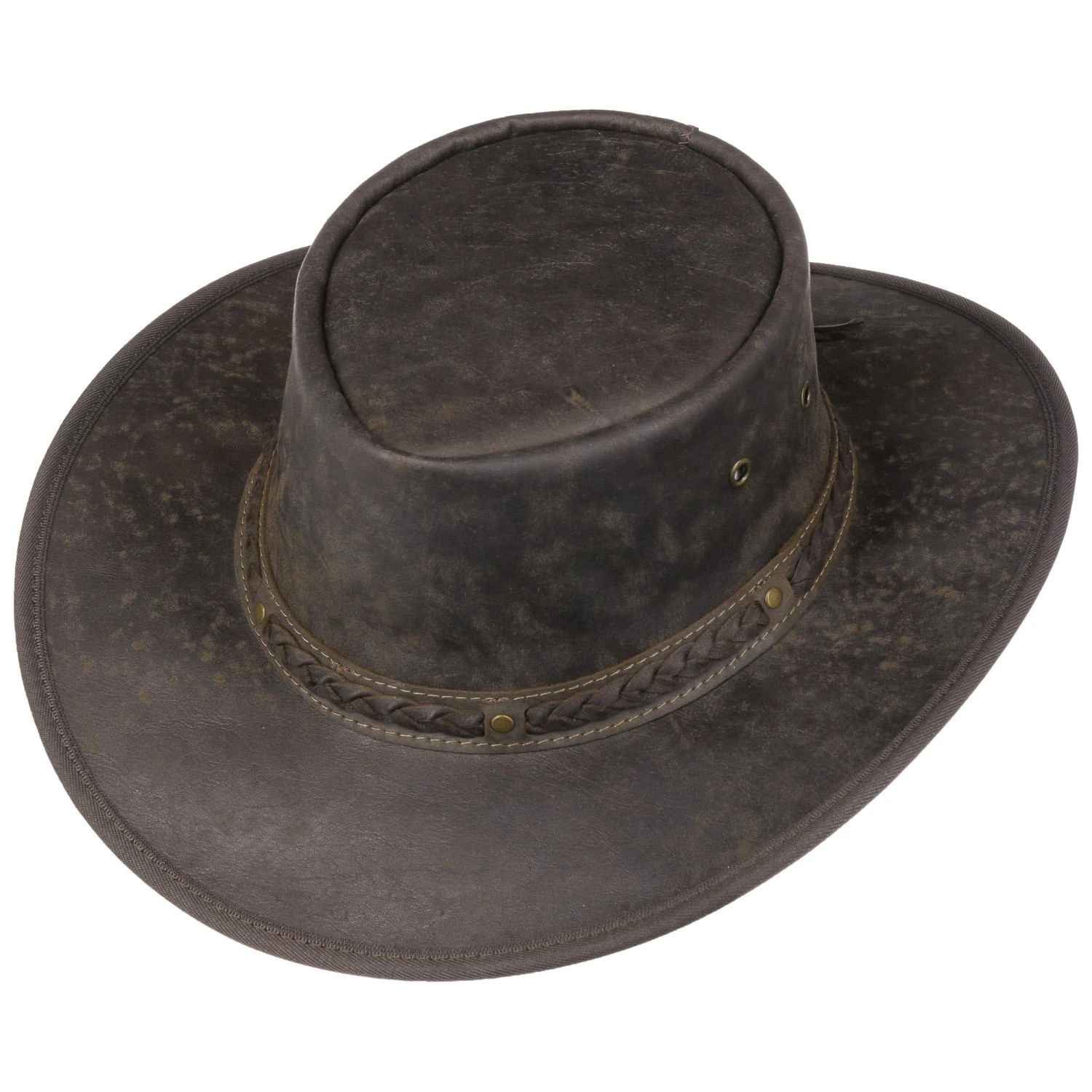 Falten Sie den flachköpfigen Hut aus authentischem Känguruleder ruhig taschenfertig zusammen, er verträgt das! Die Verarbeitung enspricht australischen Tierschutzrichtlinien und ist mit komfortbablem Stretchinnenband ausgestattet.