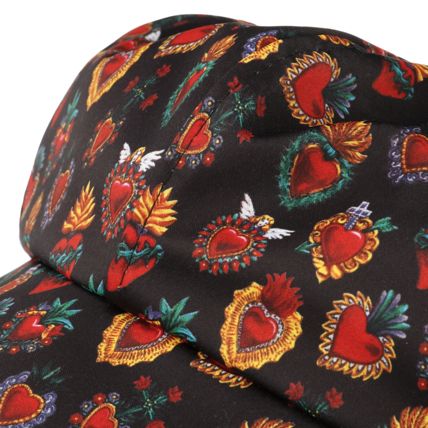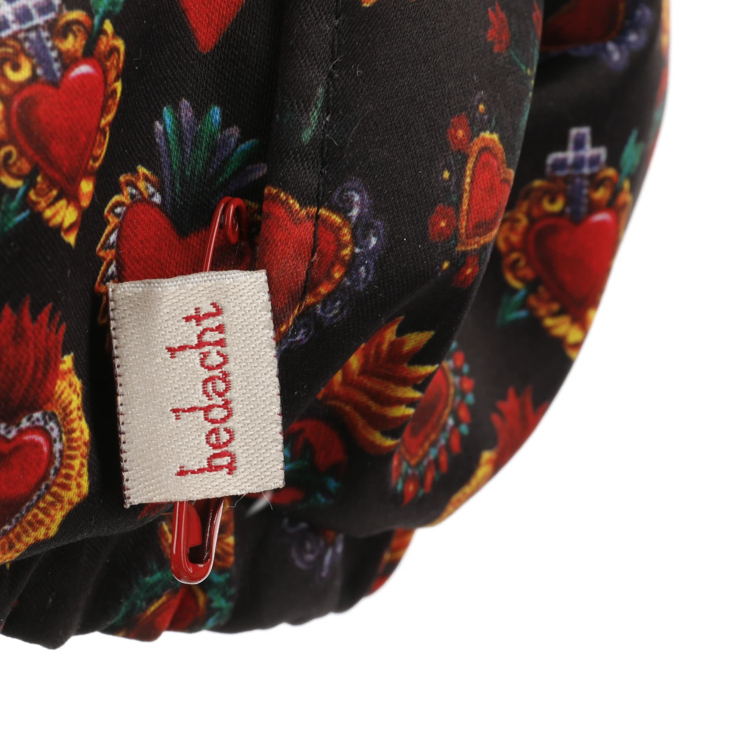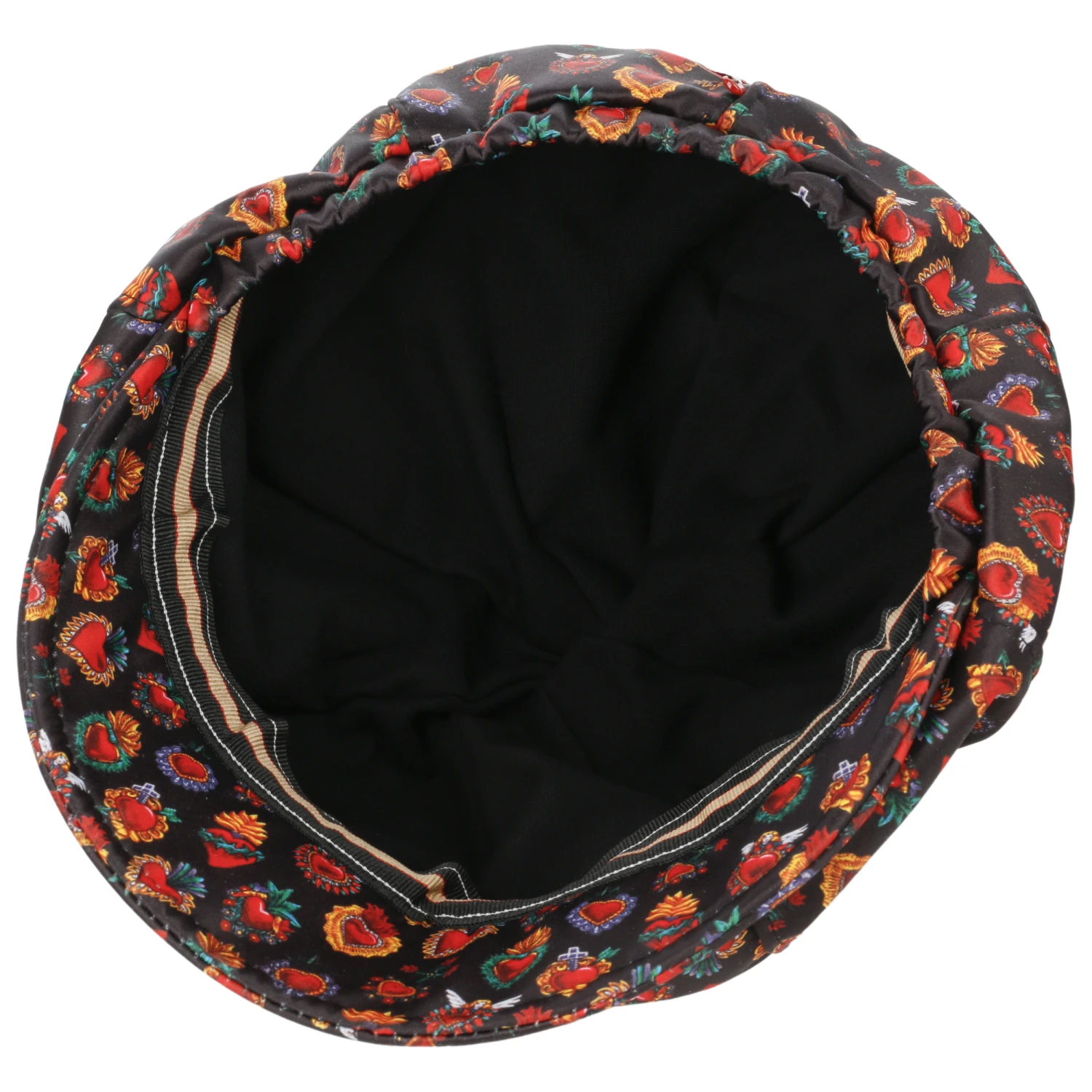 Mit auffälligen Symbolen in kontrastreichen Farben zieht die allover gemusterte Ballonmütze von bedacht die Blicke auf sich.