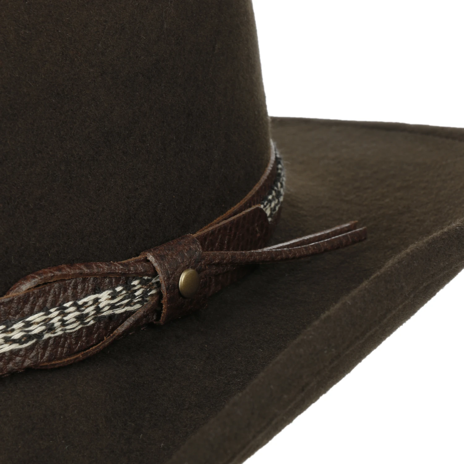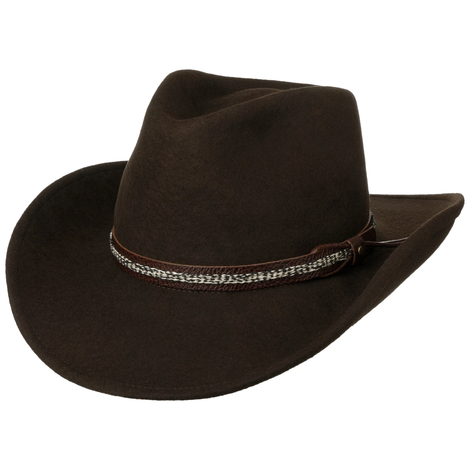 Sein komfortables Material aus 100% Wollfilz bietet dem Träger natürlichen Schutz vor Feuchtigkeit und Kälte, während die typisch breite Krempe viel Schatten spendet. Das dynamische Design eines Cowboyhutes ermöglicht einen selbstbewussten, charaktervollen Auftritt.