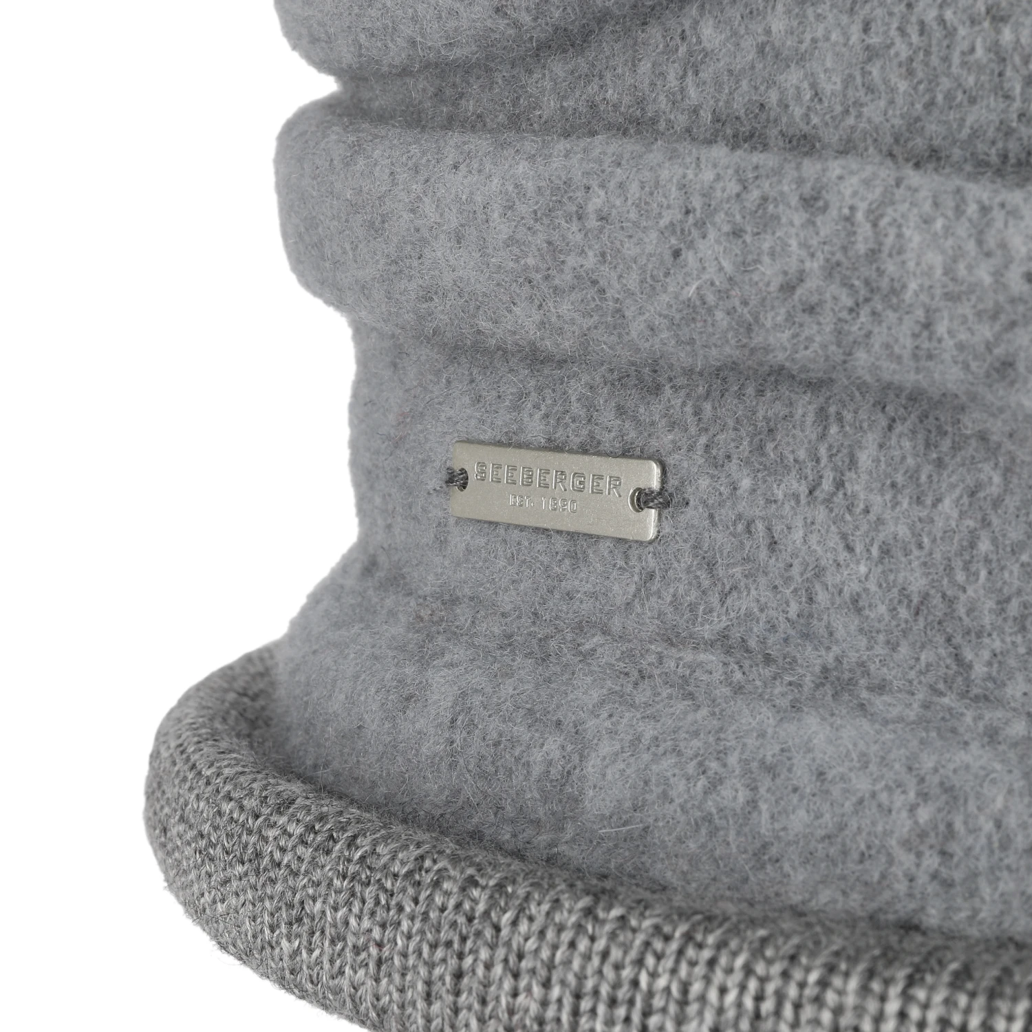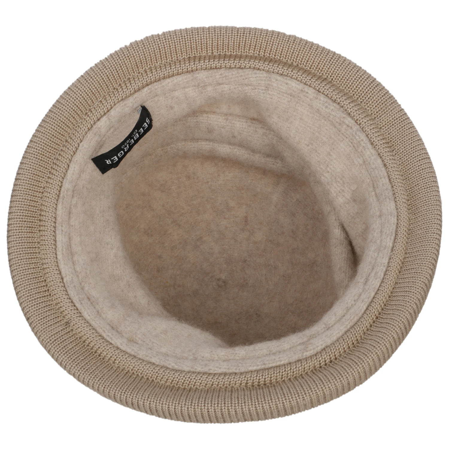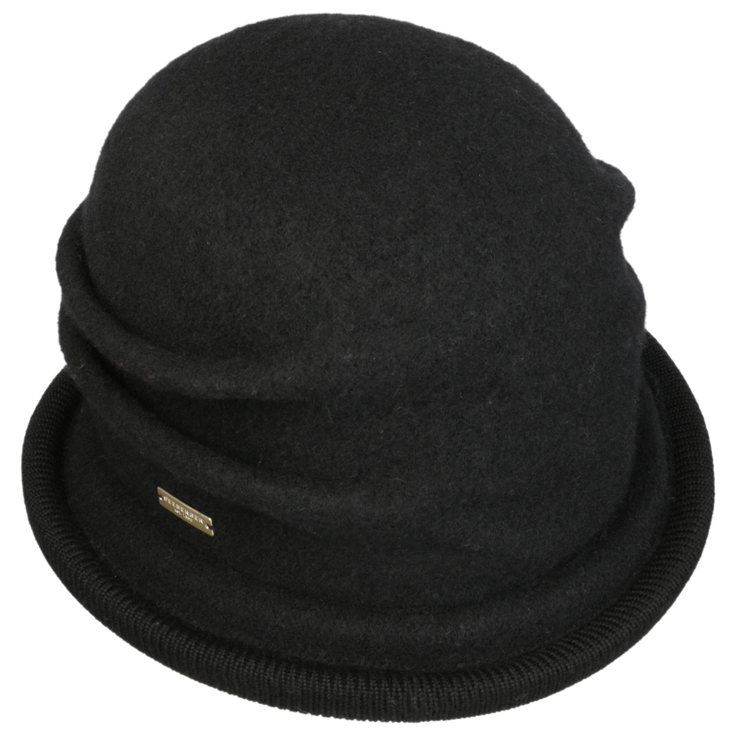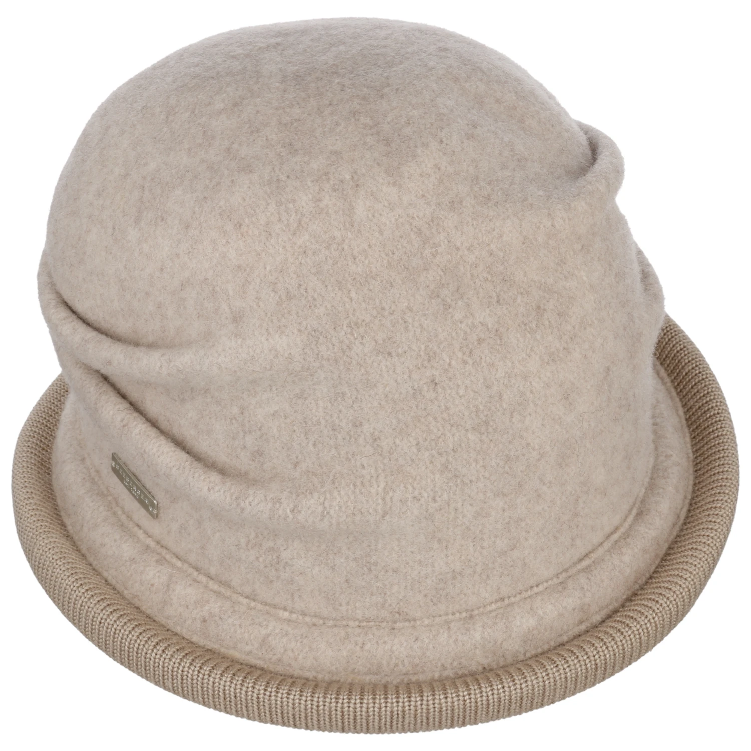 Das seitliche metallene Markenemblem zeigt: Der behagliche Glockenhut stammt aus dem Hause Seeberger.