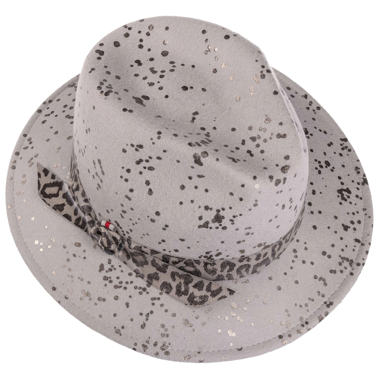 Raffiniert eingesetzte Akzente machen das in einer klassischen Travellerform gehaltene Modell zum schicken Blickfang. Eine Besonderheit ist zum Beispiel das Allover-Muster aus willkürlich angeordneten Pünktchen. Mit seiner organischen Ausstrahlung verleiht es dem aus 100% einfarbigem Wollfilz gefertigten Dessin eine dynamische Note.