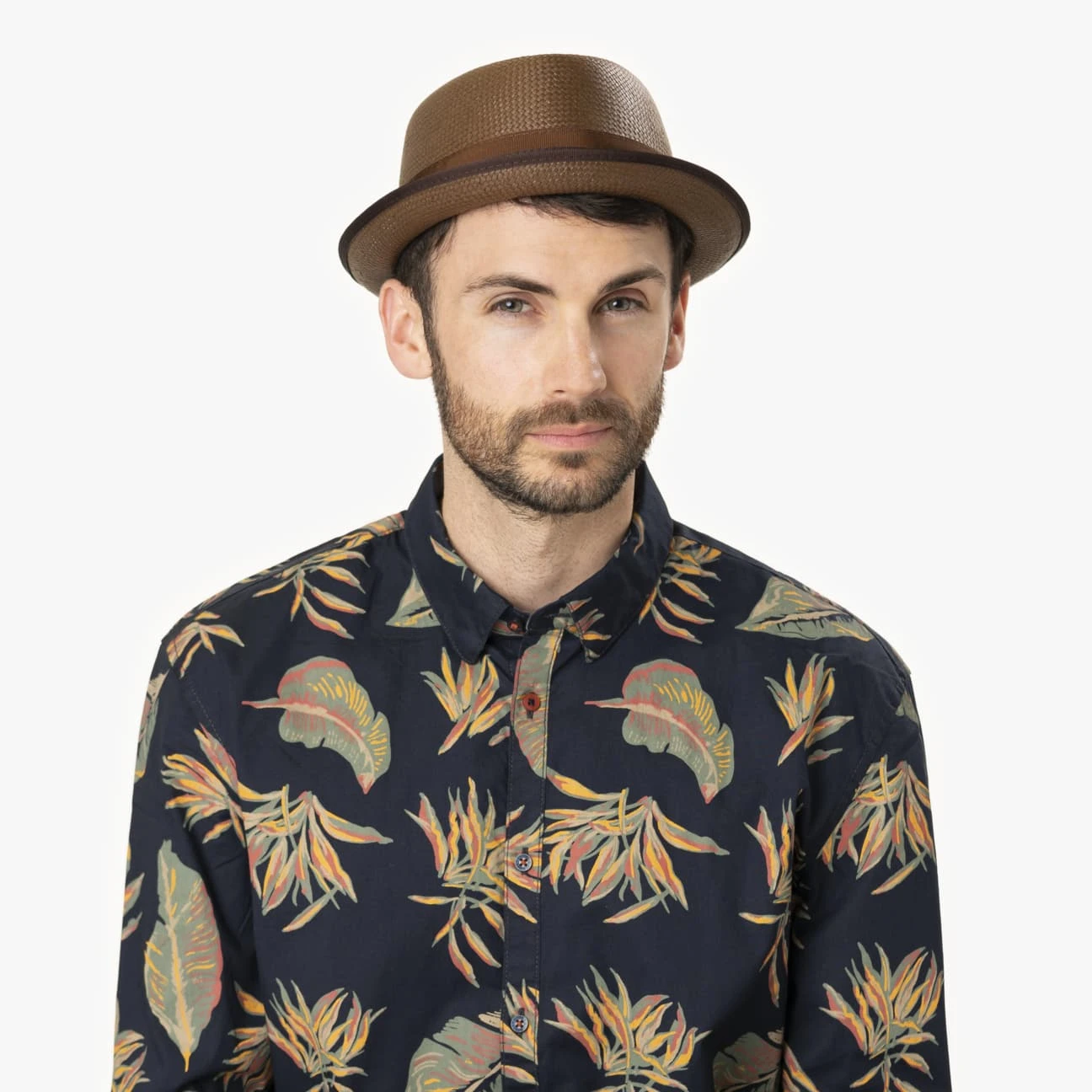 Während die klassische Form mit gebogener Krempe und adretter Diamond Crown besonders apart wirkt, zeigt sich das leicht glänzende Material aus 100% leichtem Papierstroh als stilvoll unbeschwert. Einen weiteren Kontrast kreiert das breite gestreifte Ripsband, mit dem der Hut dekoriert ist.